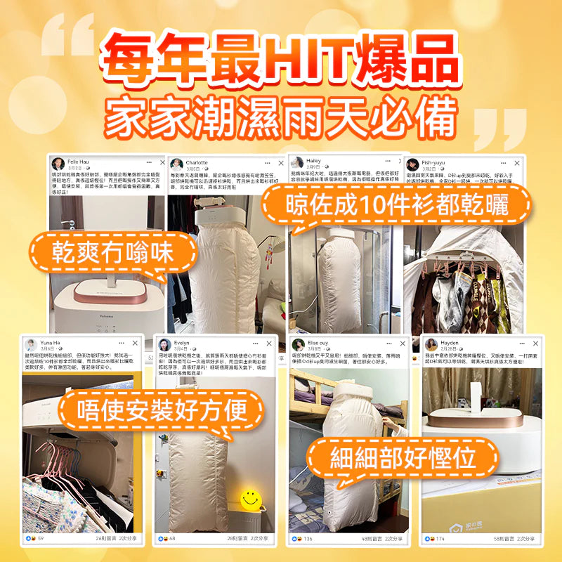 日本Yohome 免安裝迷你折疊可移動大容量速乾殺菌除蟎烘乾機 [香港行貨]