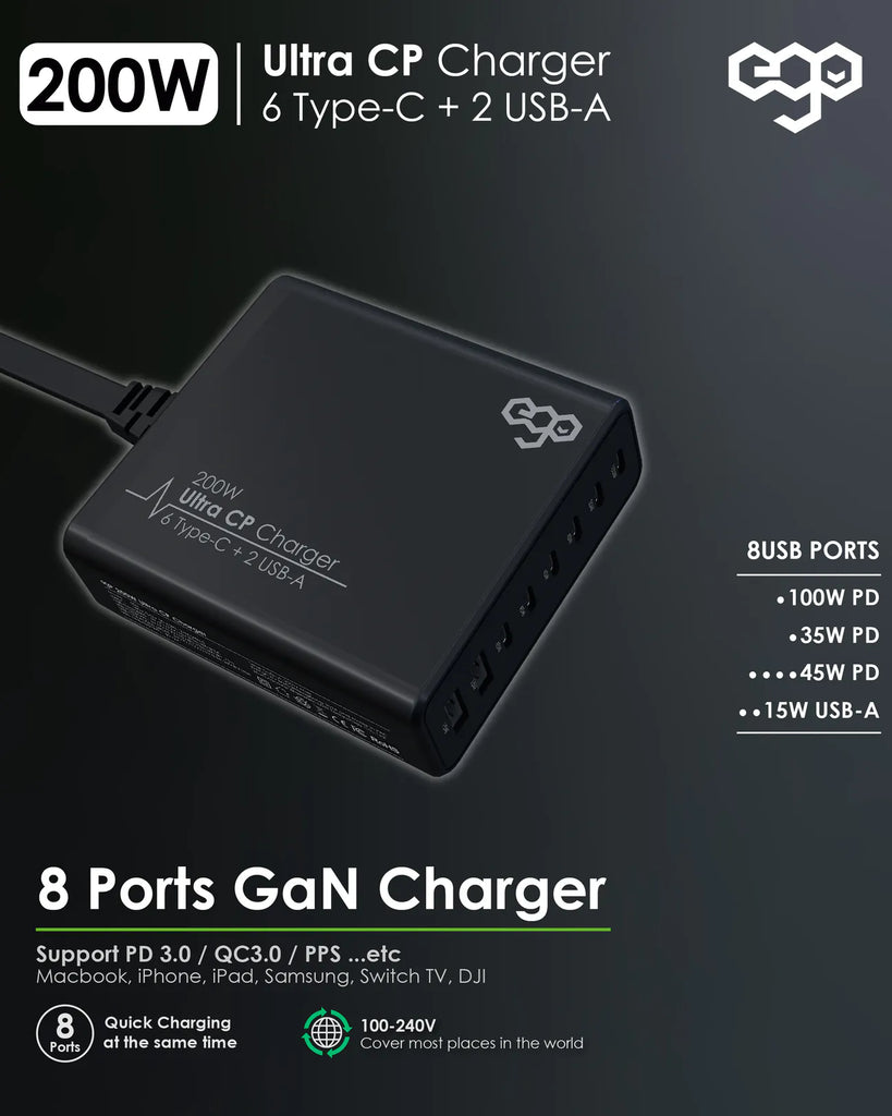EGO 200W Ultra CP 8USB GaN 充電器 [香港行貨]