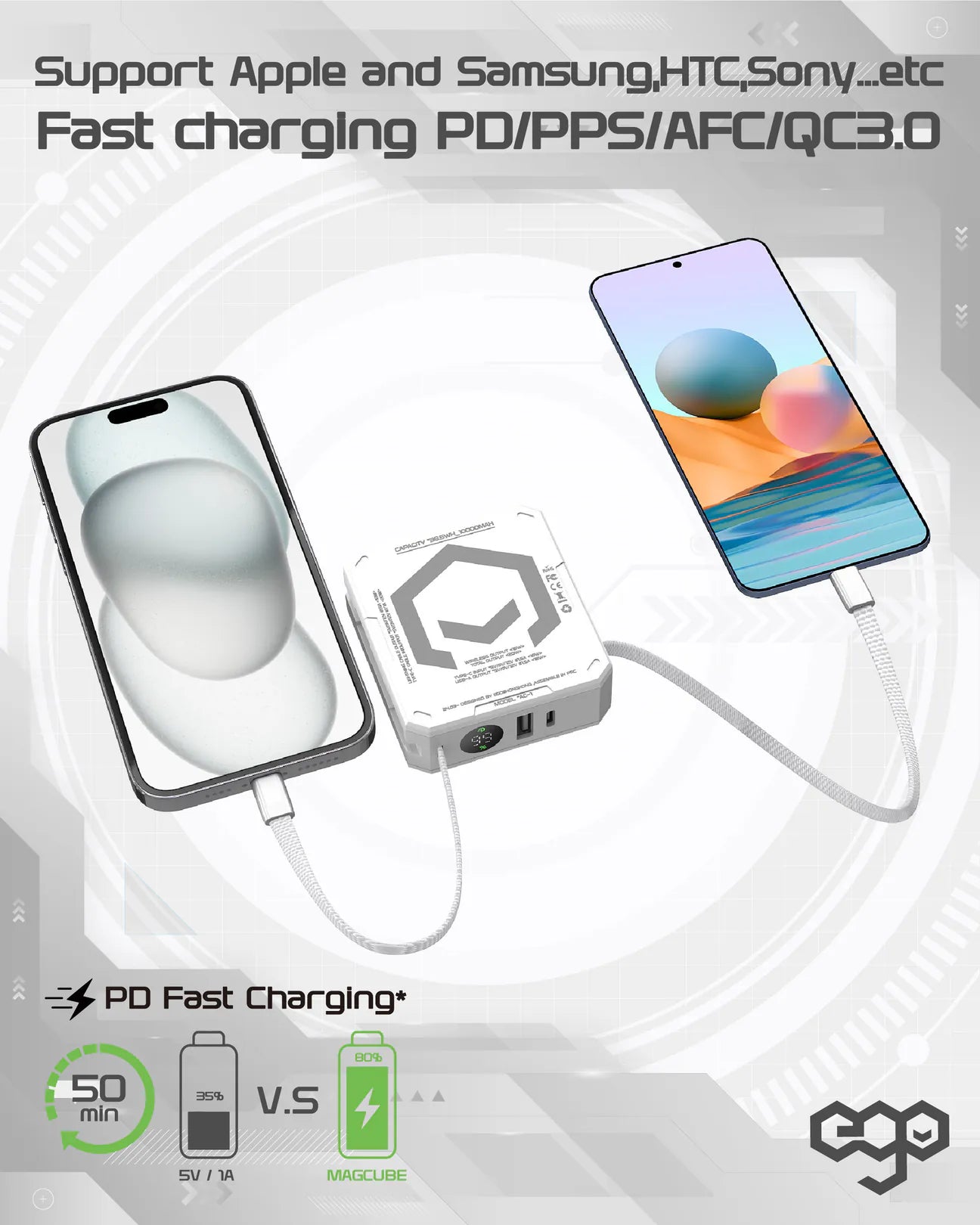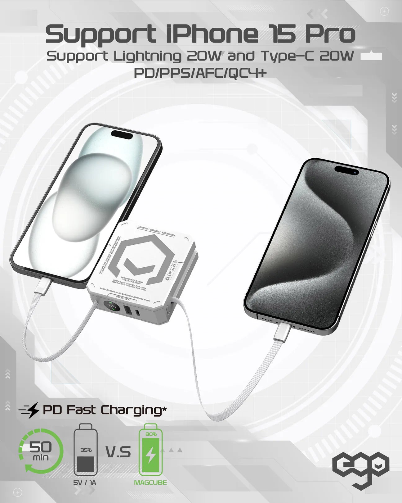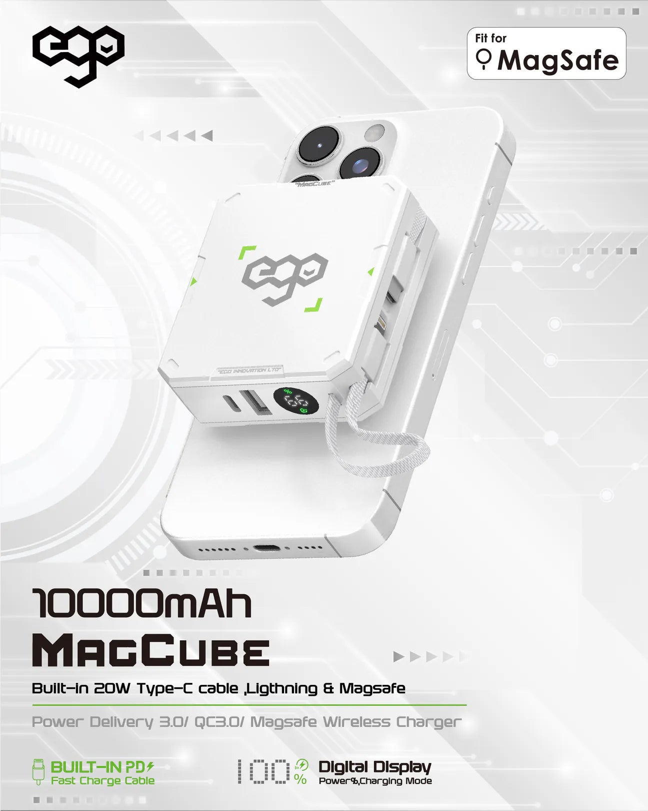 EGO MAGCUBE 10000mAh Magsafe 移動電源 [香港行貨] - 連充電線