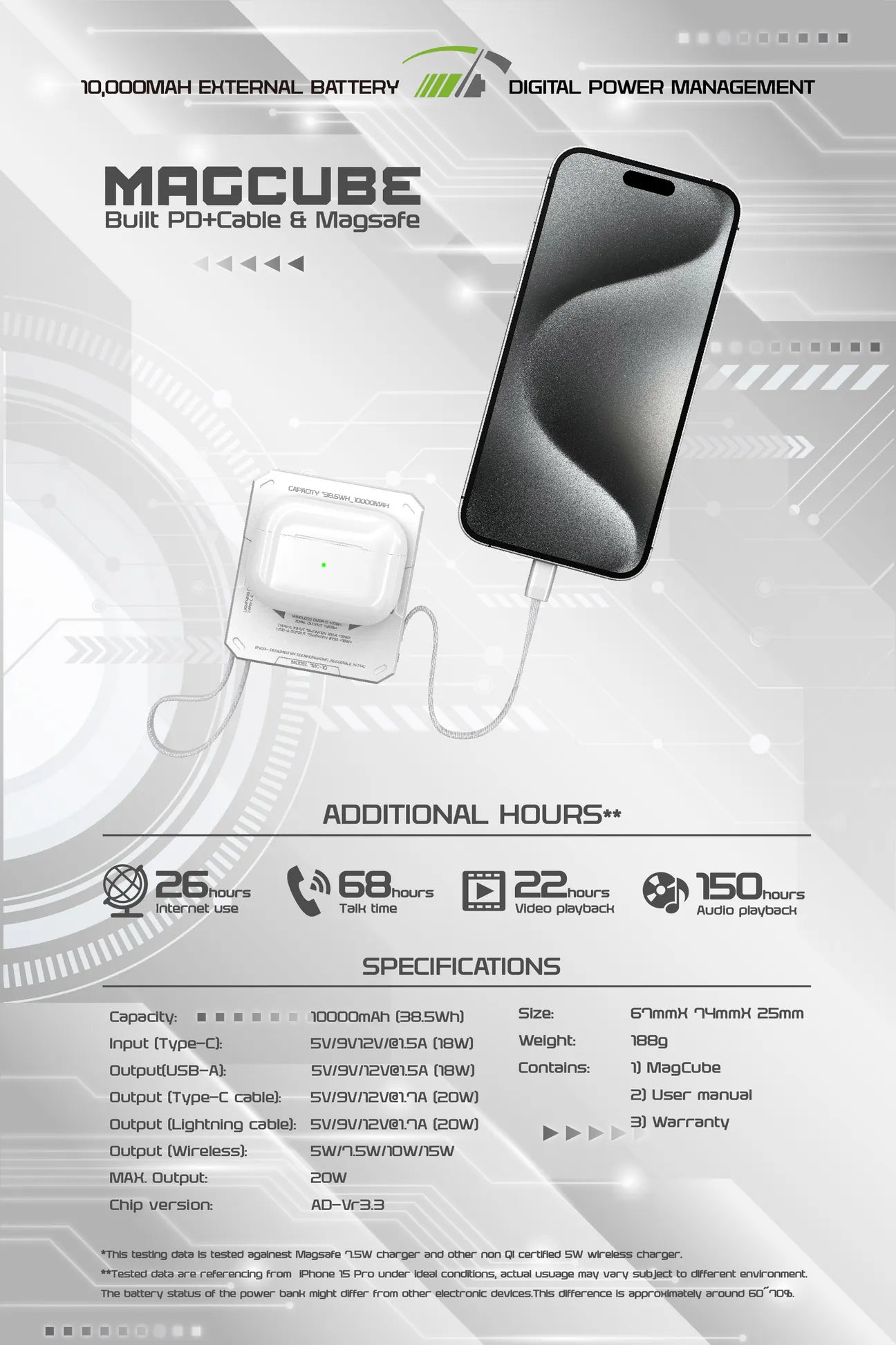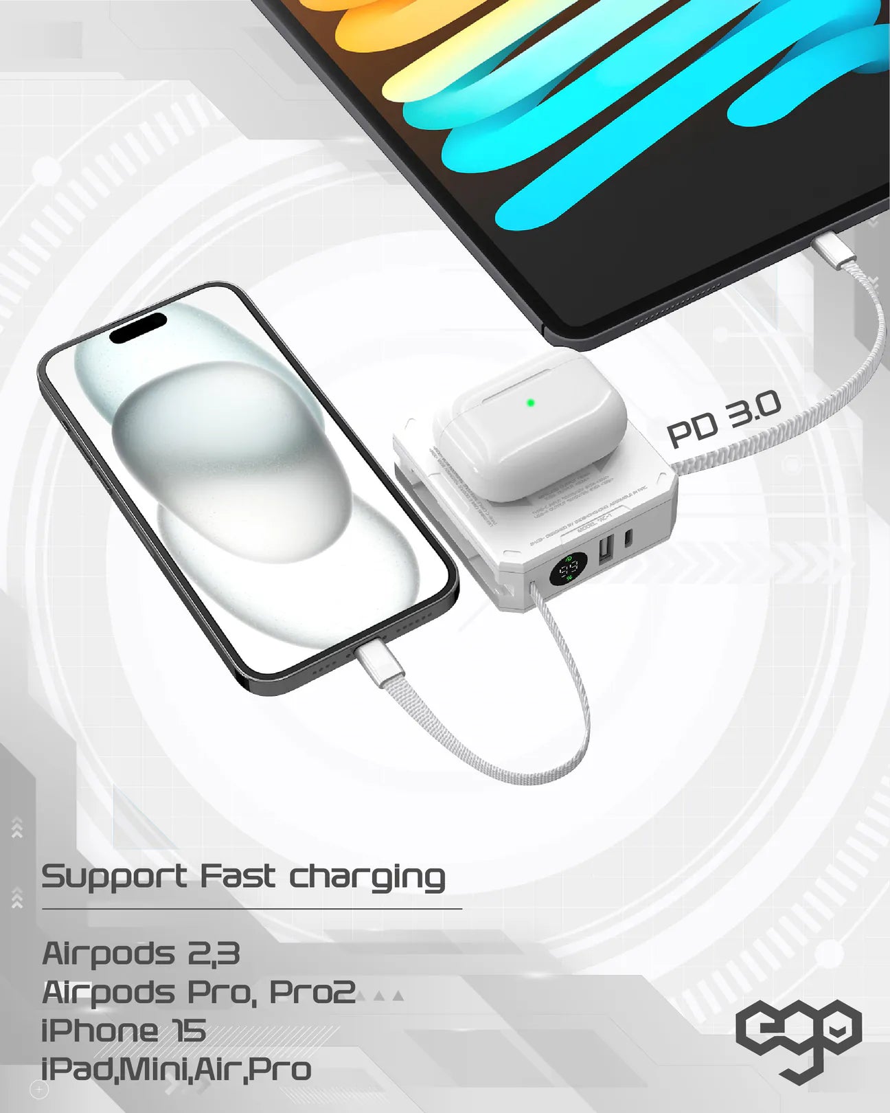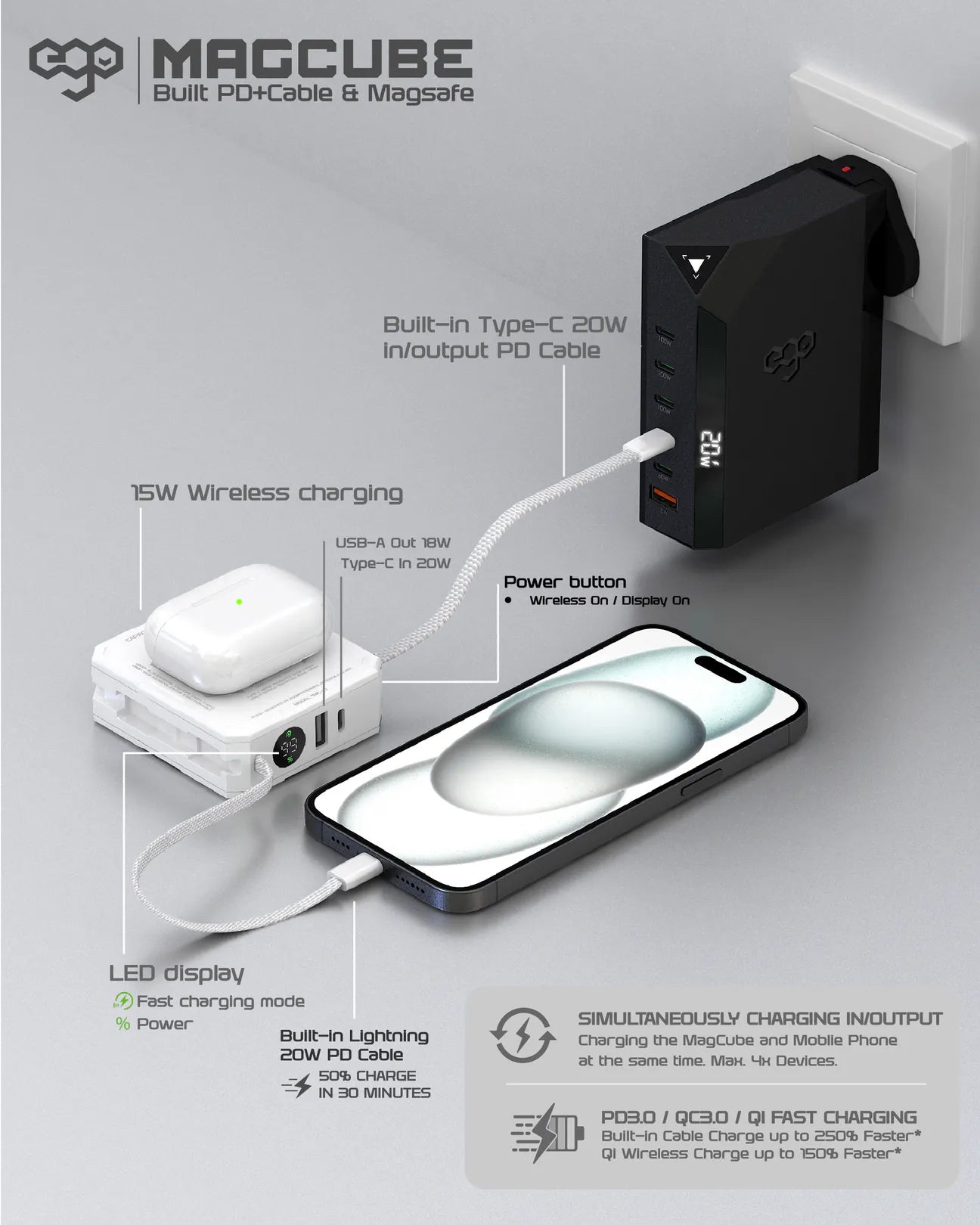 EGO MAGCUBE 10000mAh Magsafe 移動電源 [香港行貨] - 連充電線