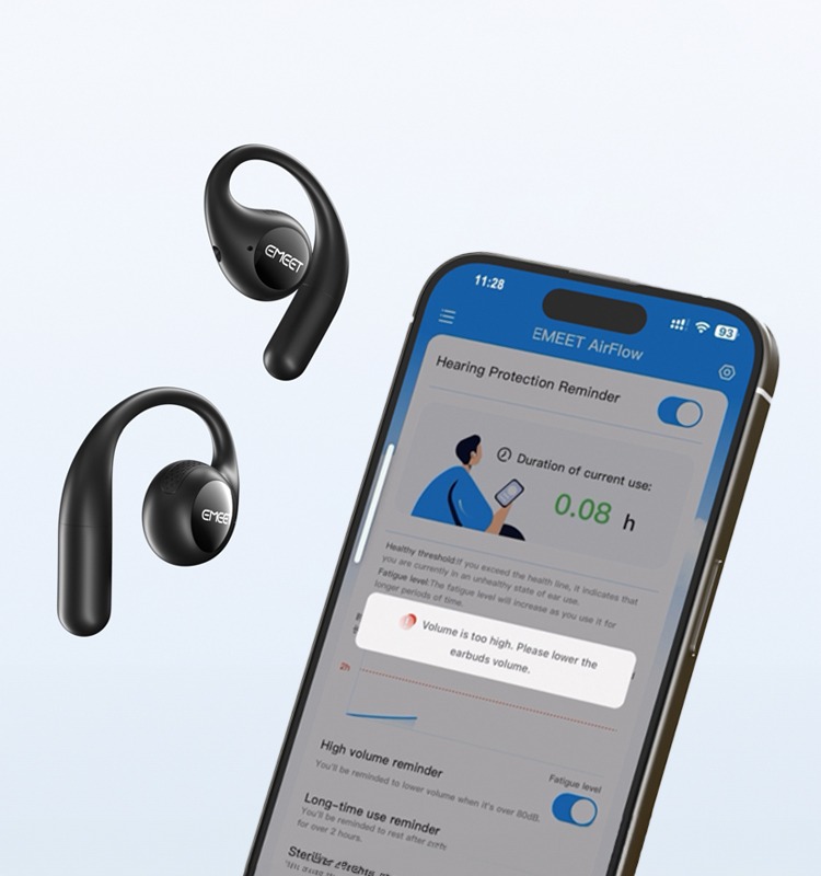 EMEET Airflow 雙向極致降噪耳機為您提供極致舒適的佩戴體驗,此外,EMEET Airflow 還配備了可拆式麥克風,利用市場上獨有的雙向降噪技術,能夠過濾掉現場和遠程兩邊高達50dB的噪音,確保通訊雙方的清晰度!