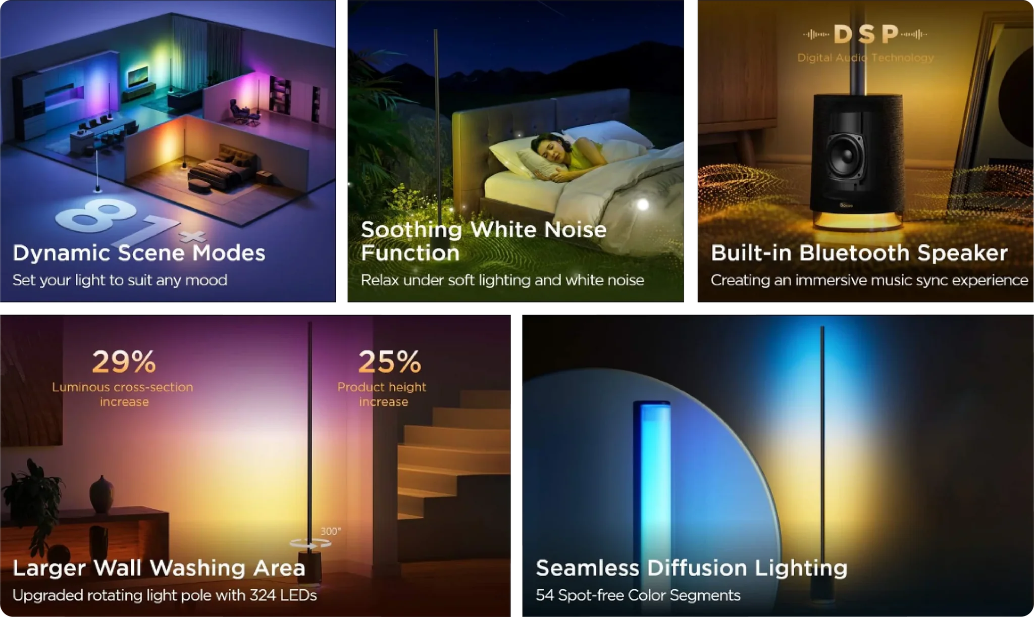Govee RGBICWW 轉角落地牆燈 Pro (黑色) [香港行貨]