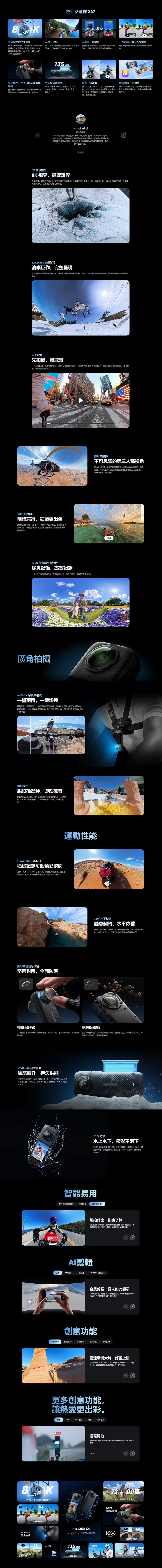 8K 30fps 全景影片 - 我們有史以來最高的解析度,可呈現令人驚嘆的畫面! 另外,還有新的 5.7K 60fps 和 4K 100fps 以及 7200萬畫素照片。