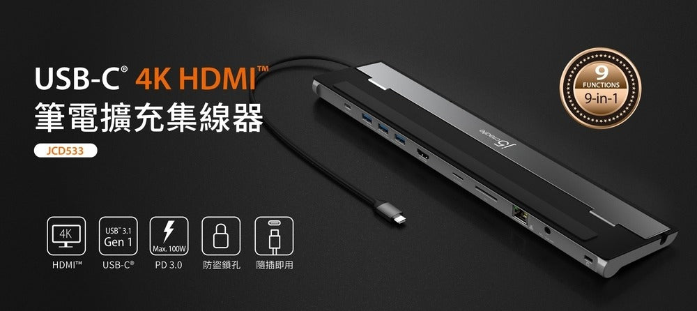 J5create JCD533 9 合 1 USB-C 多功能筆電擴充座 [兩年香港保養] - DIGIBAL ONLINE J5create JCD533 9 合 1 USB-C 多功能筆電擴充座 [兩年香港保養] - DIGIBAL ONLINE J5create JCD533 9 合 1 USB-C 多功能筆電擴充座 [兩年香港保養] - DIGIBAL ONLINE