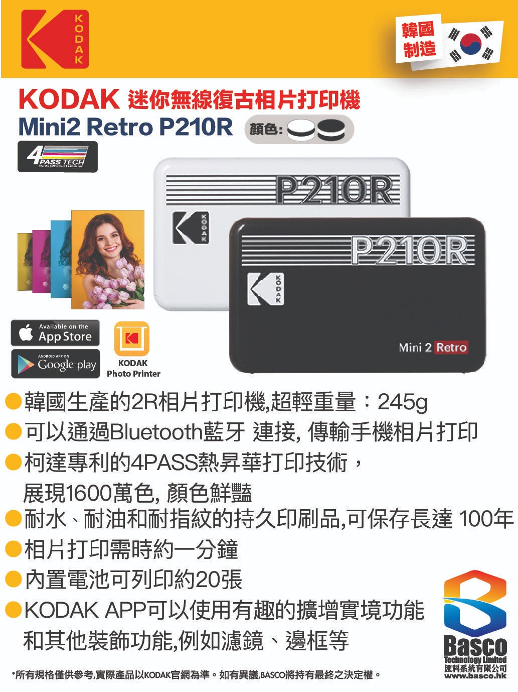 KODAK Mini 2 Retro 相片打印機 - 白色 [香港行貨]