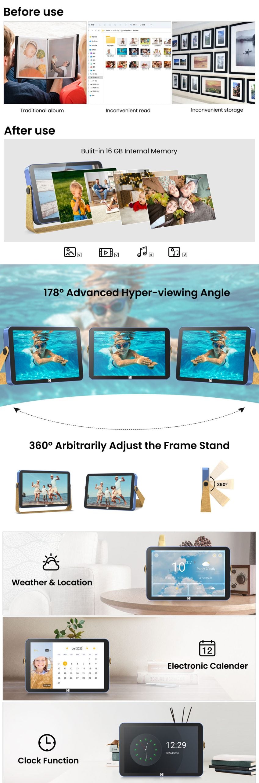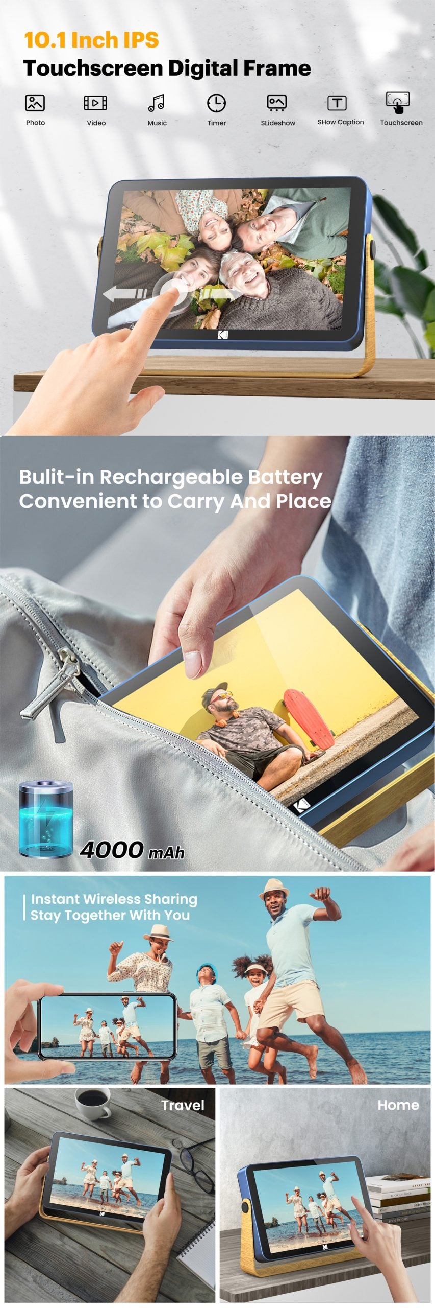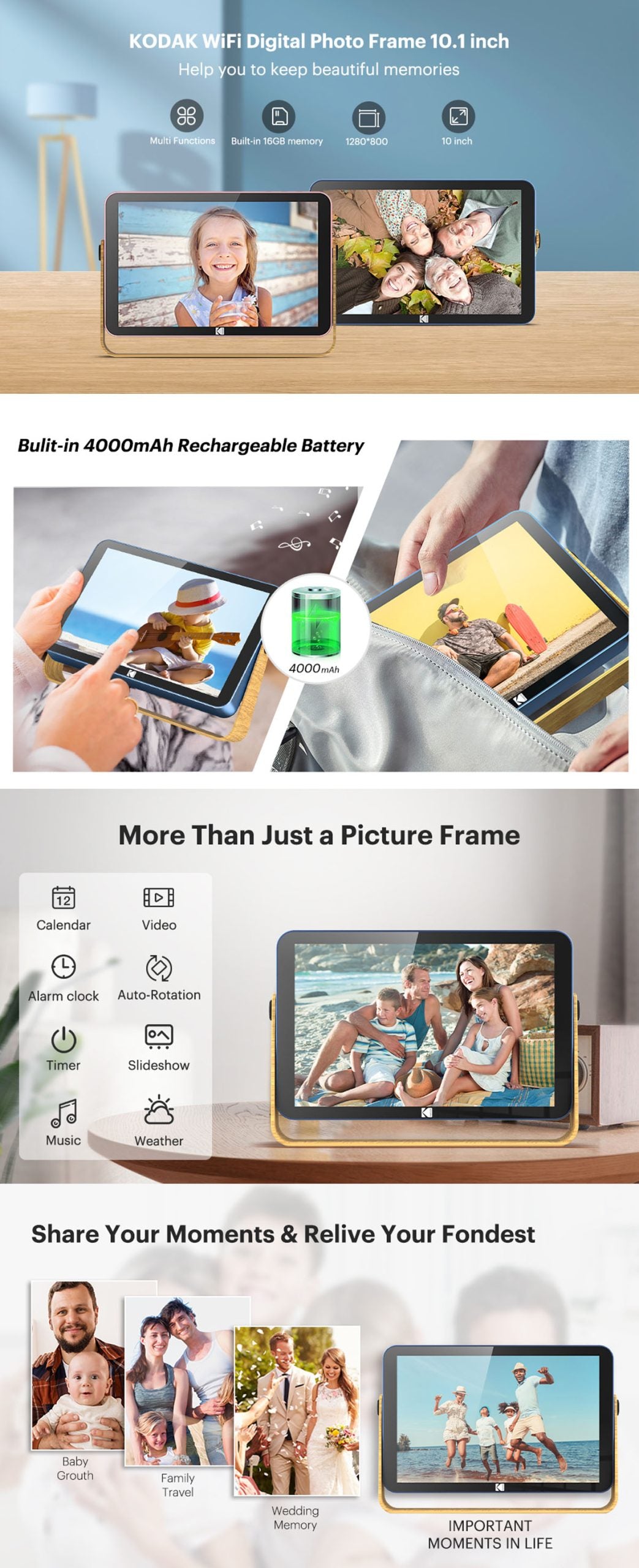 Kodak RWF-108V 10″觸摸屏高清電子相架 (藍色) [香港行貨]