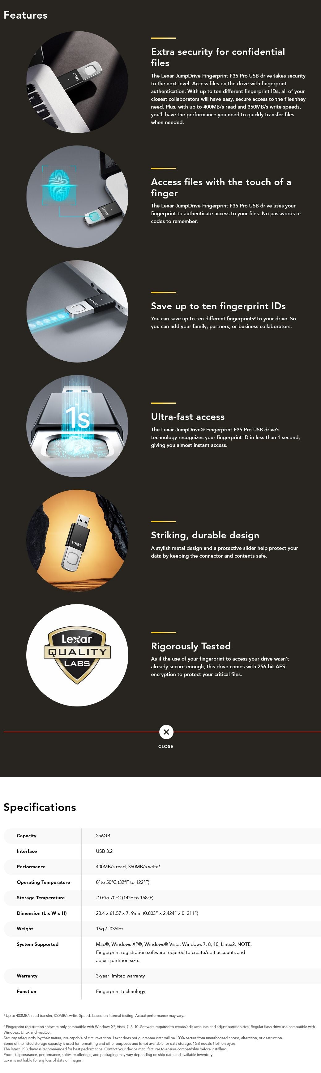 LEXAR - F35 PRO JumpDrive 指紋認證 USB手指 [原裝行貨]