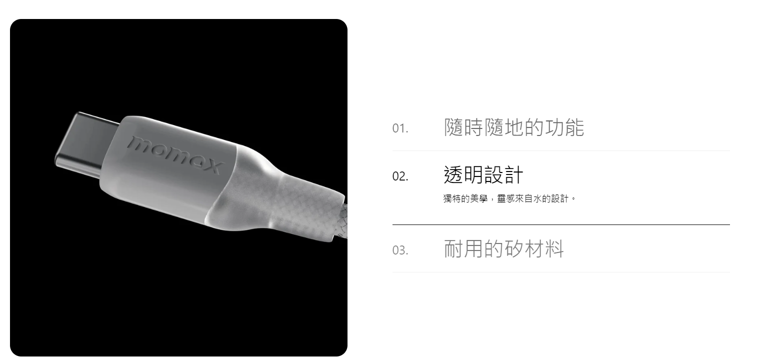 MOMAX 1-Link Flow CC X 60W USB-C 充電線 (1.2米) - 白色 [香港行貨]