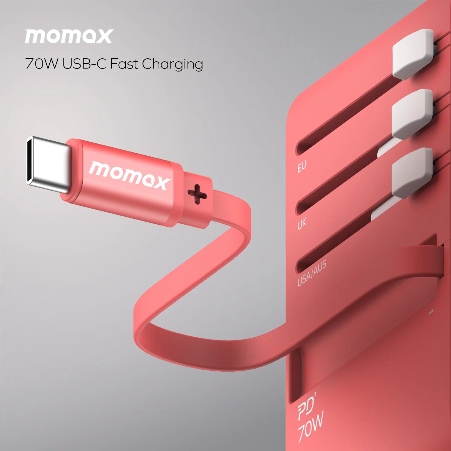 MOMAX 1-World+ 70W GaN 3插口及內置伸縮USB-C充電線旅行插座 [二年保養]