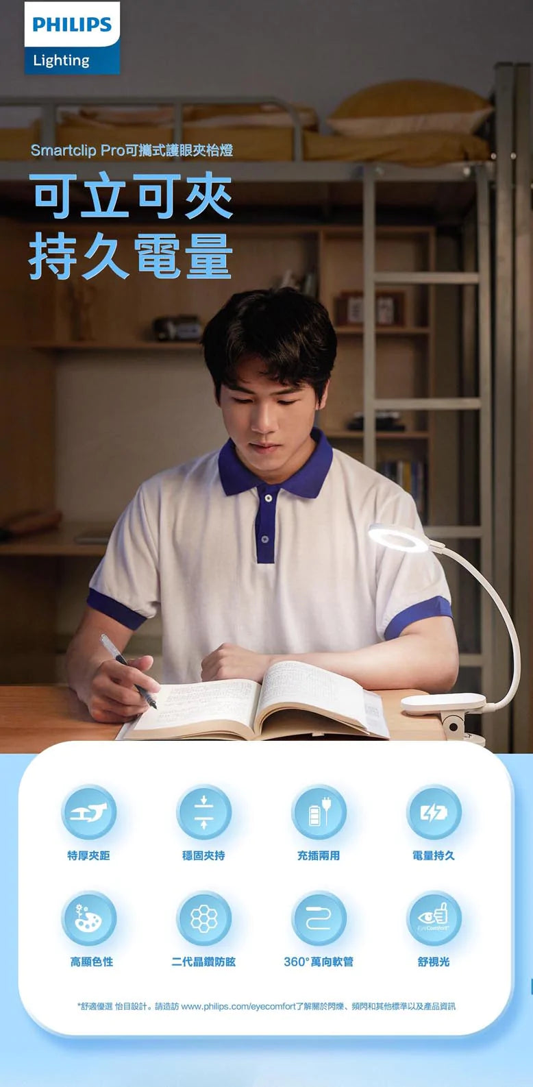 PHILIPS 66264 SmartClip Pro 可攜式護眼夾枱燈 香港行貨