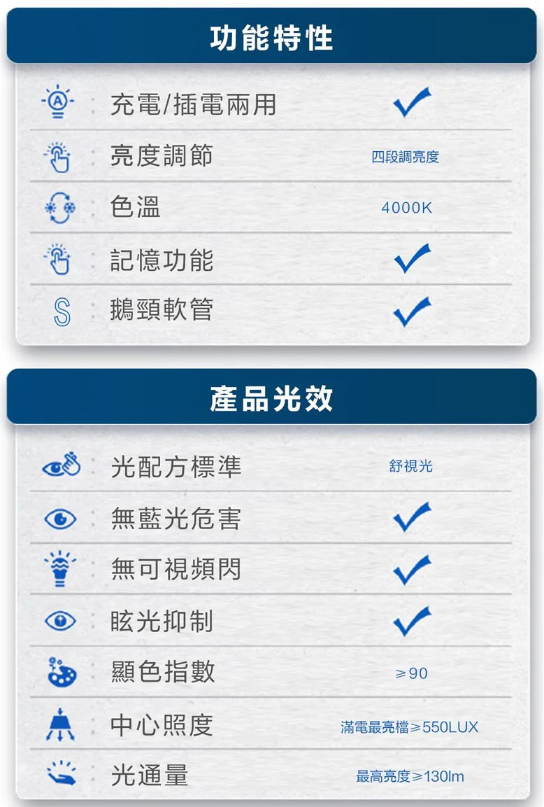 • 無藍光危害