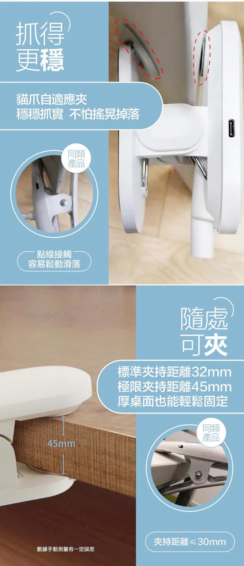 • 貓爪自適應夾+鵝頸軟管