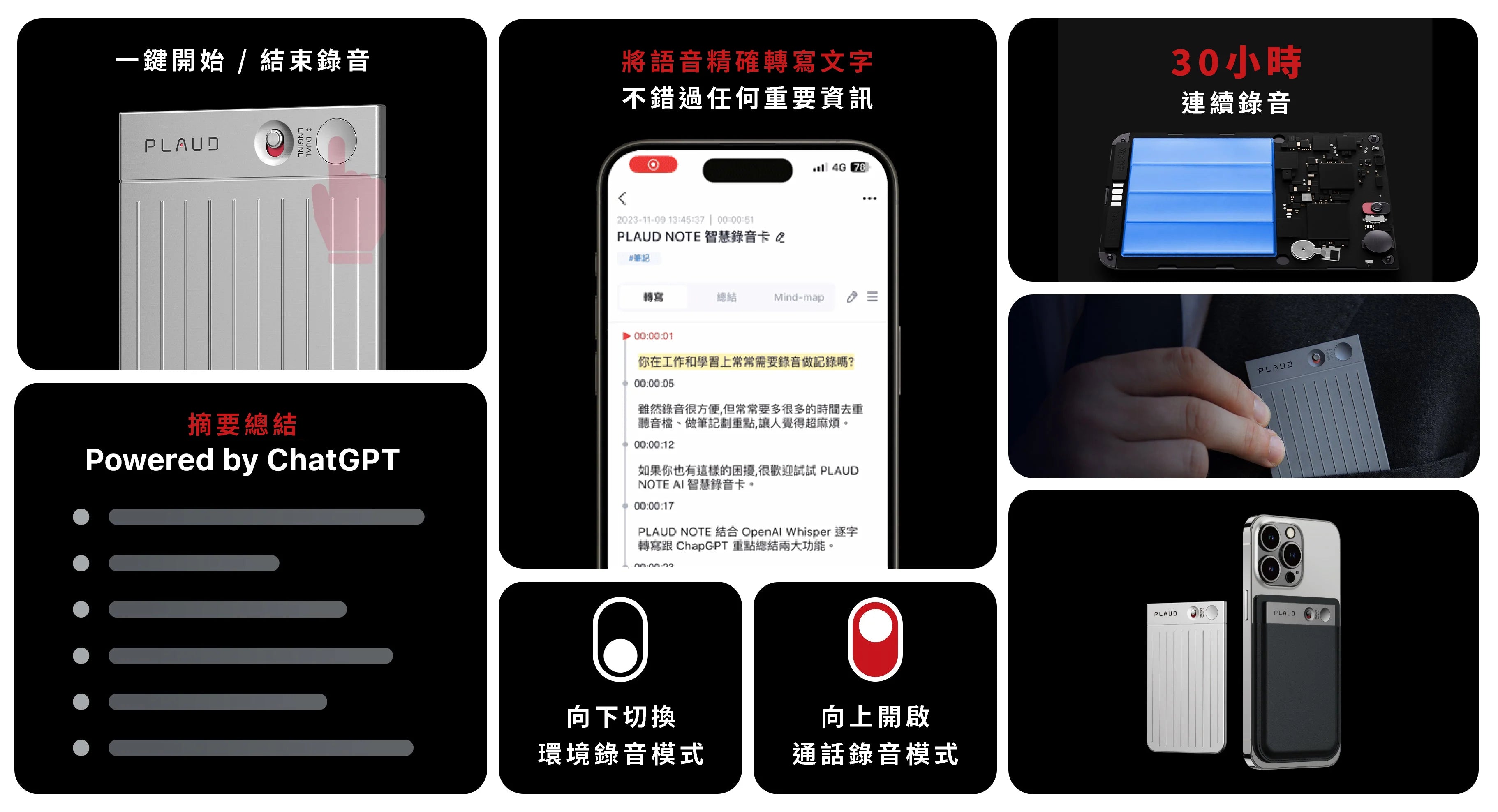 PLAUD NOTE ChatGPT 人工智能的AI卡片錄音機 (香港行貨)