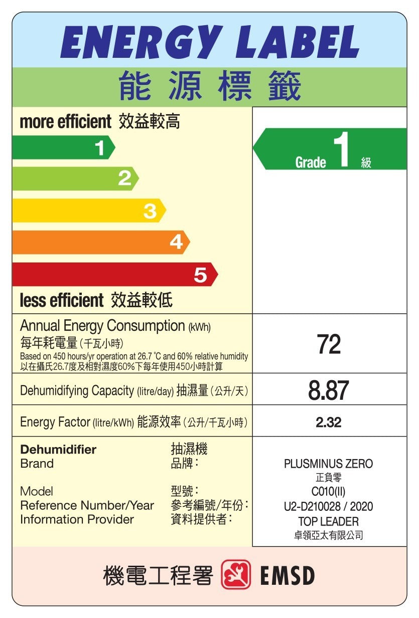 Plus Minus Zero 正負零 XQJ-C010(II) 節能抽濕機(14公升) 白色 [香港行貨]