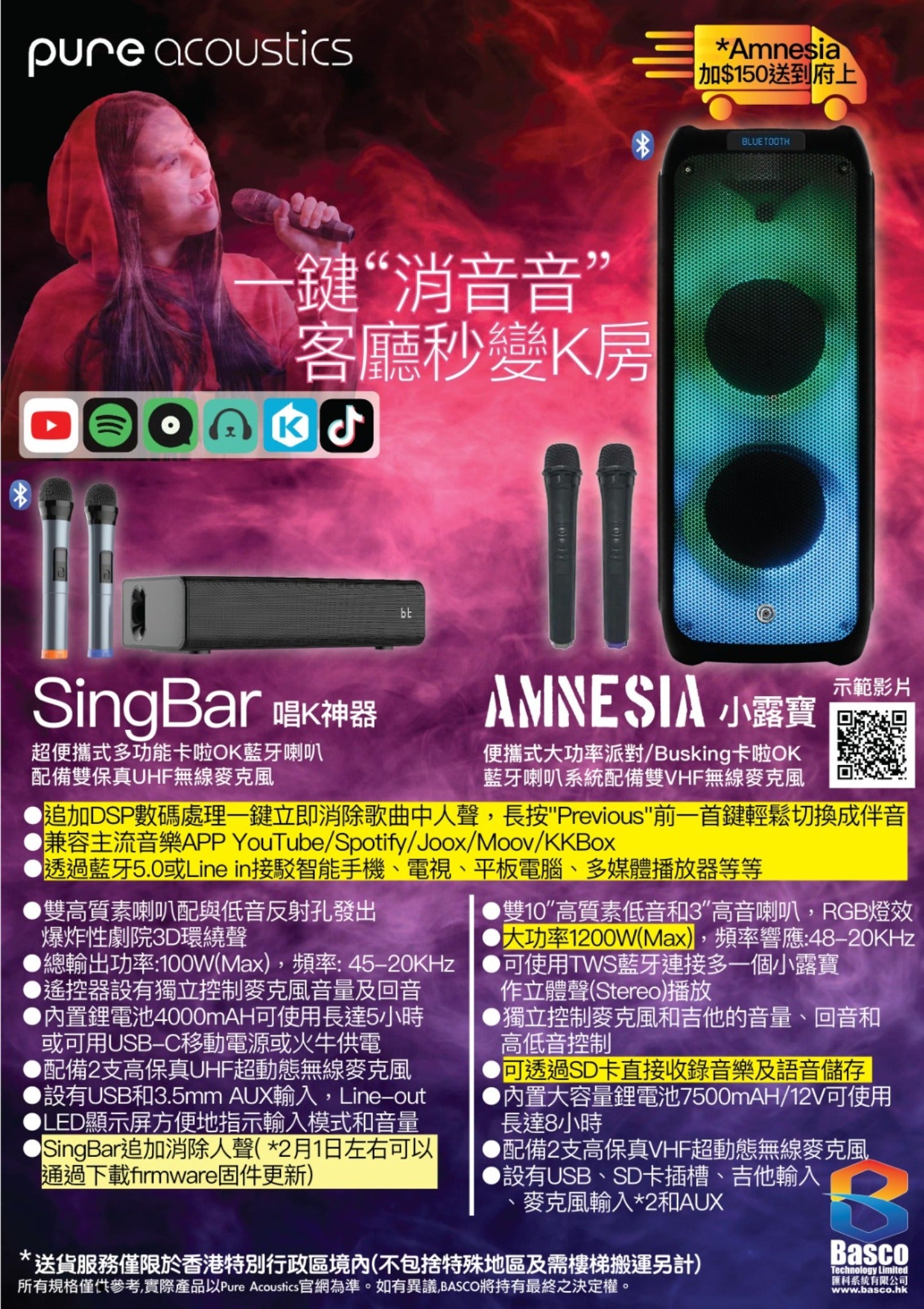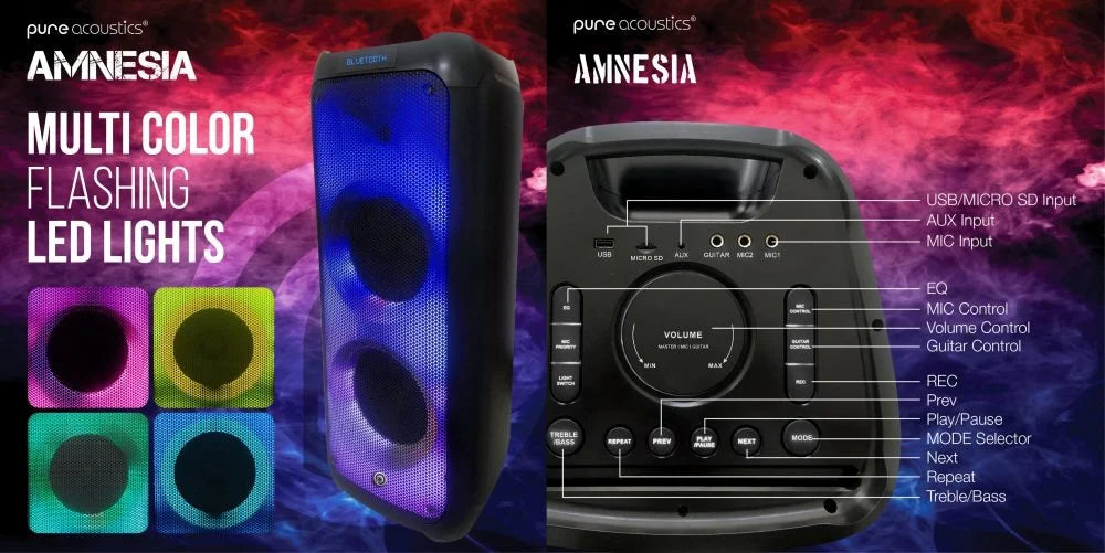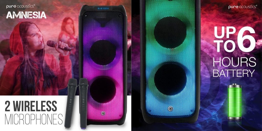 Pure Acoustics Amnesia 派對 Busking 卡啦OK 大功率藍牙喇叭 (配備遙控器及雙VHF無線麥克風) [香港行貨]