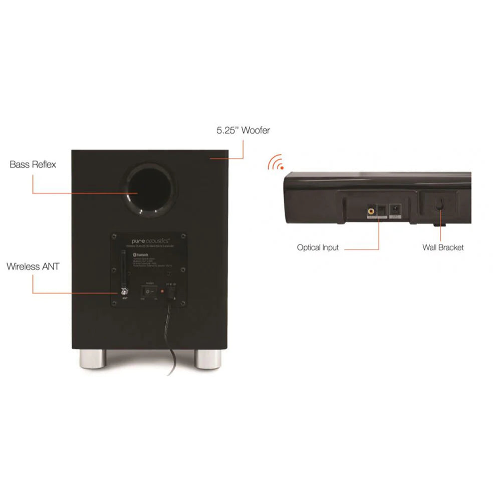 Pure Acoustics SBW175 2.1環繞聲帶低音炮藍牙條形音箱音響【原裝行貨】