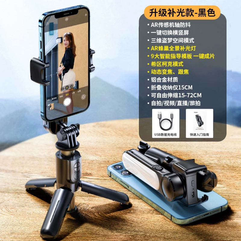 RTAKO銳塔克 L09 迷你專業防震 人臉追蹤補光折疊手機雲台 - 三腳架自拍杆- 黑色 [香港行貨]