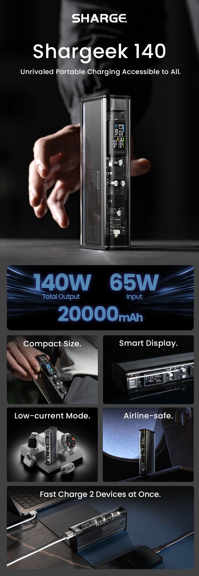 SHARGE 140W 透明超級行動電源 20000mAh SP140 [香港行貨]