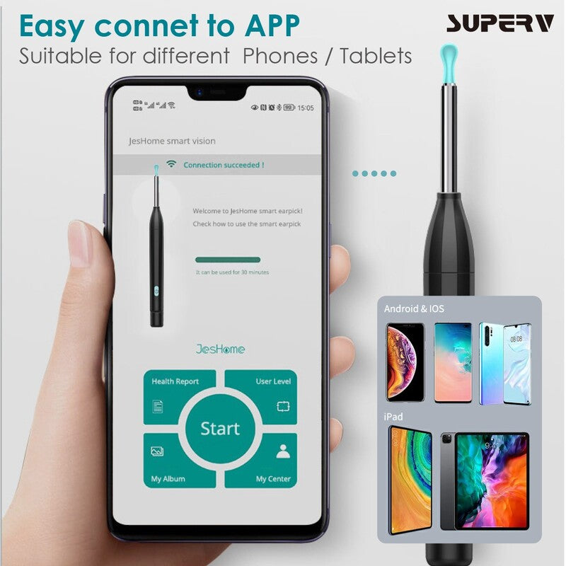 • 360°定向萬向陀螺儀,畫面更穩定,輕鬆挖耳