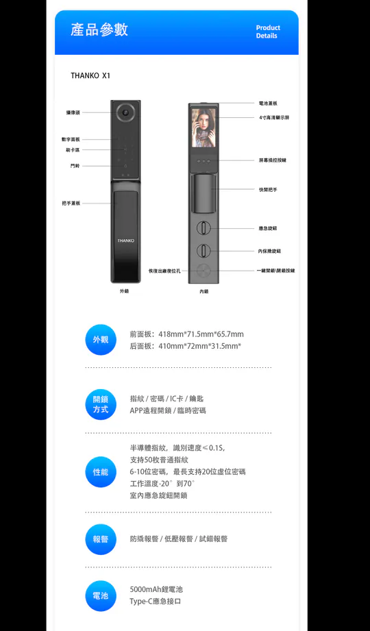 THANKO X1 人臉識別貓眼鎖 (包安裝) [香港行貨]