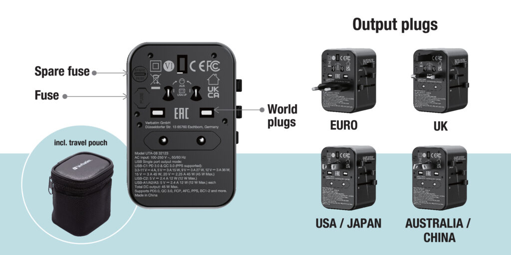 Verbatim 5 端口45W 通用旅行轉插 - 32123 [香港行貨]