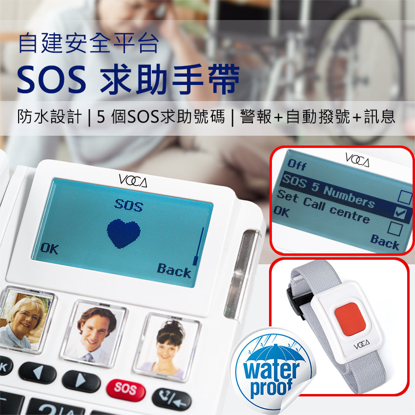 • SOS手環,您可以通過按下SOS鍵或主機的SOS 按鈕 3 秒來求救