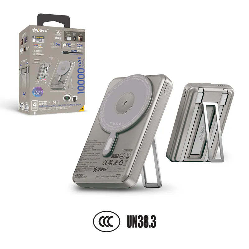 XPower M10R (3C認證版) 7合1 10000mAh PD 3.0 雙內置線+磁吸無線移動電源連支架 [香港行貨]