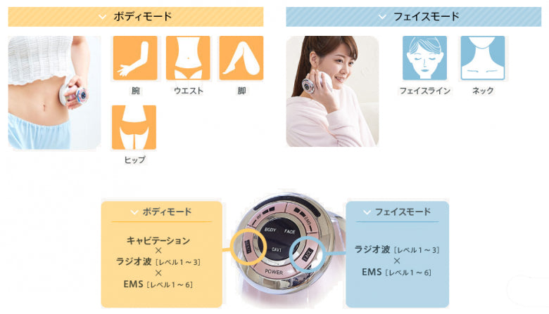 • 身體護理模式:透過 RF 射頻及超聲波達至溶脂瘦身效果