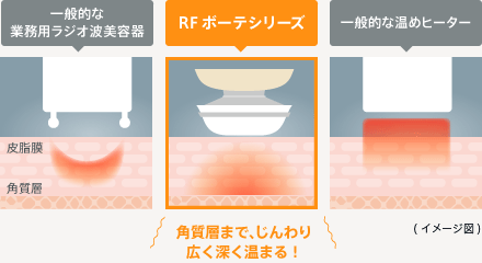 採用新設計的平板電極頭,能夠更廣泛及有效地於體內深層產生熱量。且通過 1MHz 射頻電波加溫的效應,達到適合於護理的狀態。