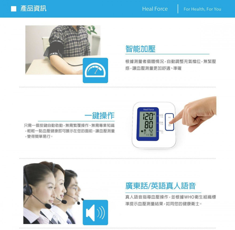 Heal Force B01 粵語真人發聲電子血壓計 |本港醫療機構使用 [香港行貨]