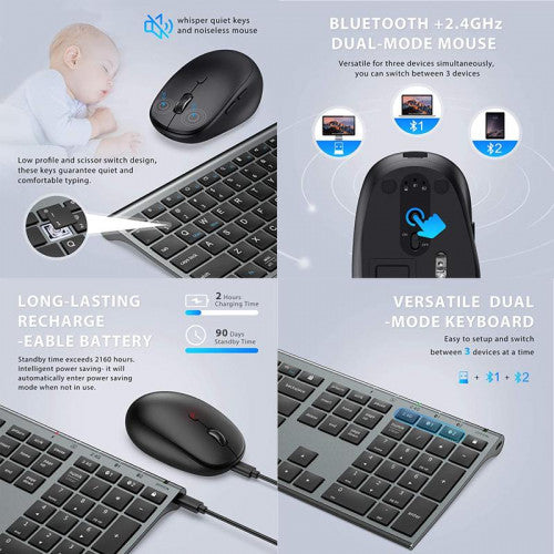 iClever DK03 Combo 4.2藍牙+2.4G無線充電滑鼠鍵盤組合 | 可配對3台設備 | 靜音按鍵 | 香港行貨