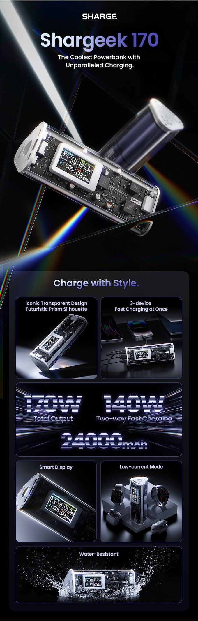 SHARGEEK SHARGE 170W 賽博棱鏡移動電源 24000mAh S170 [香港行貨]