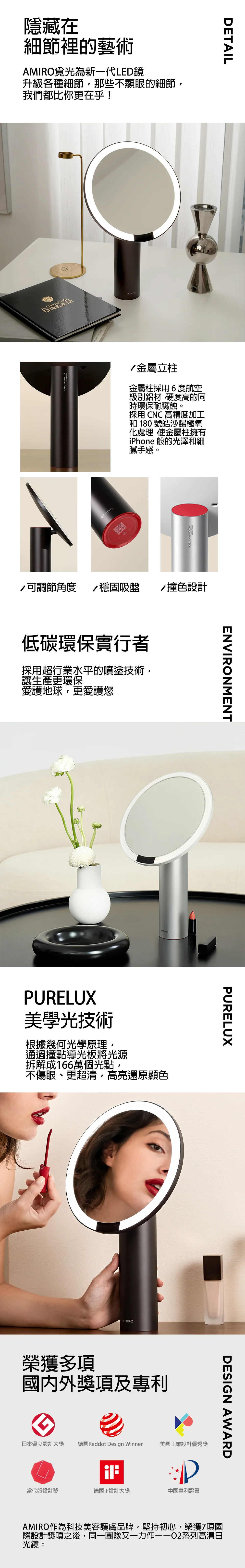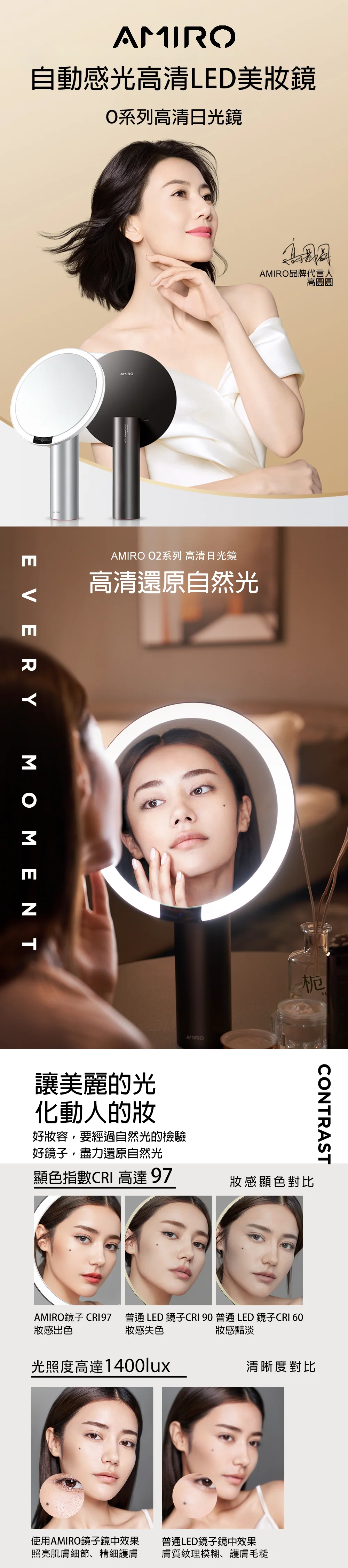 AMIRO Oath automatic light-sensitive high-definition LED makeup mirror allows you to see the complete color changes, ensuring flawless color correction for your makeup.
