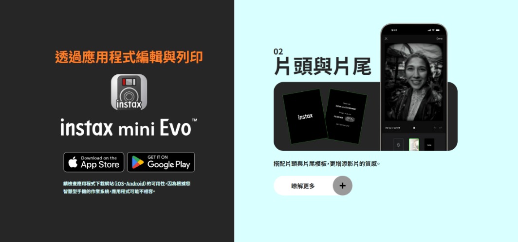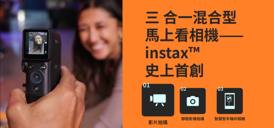 Fujifilm Instax mini Evo Cinema 即影即有相機,首款可拍攝影片和照片的instax™設備還可以列印智慧型手機的照片。