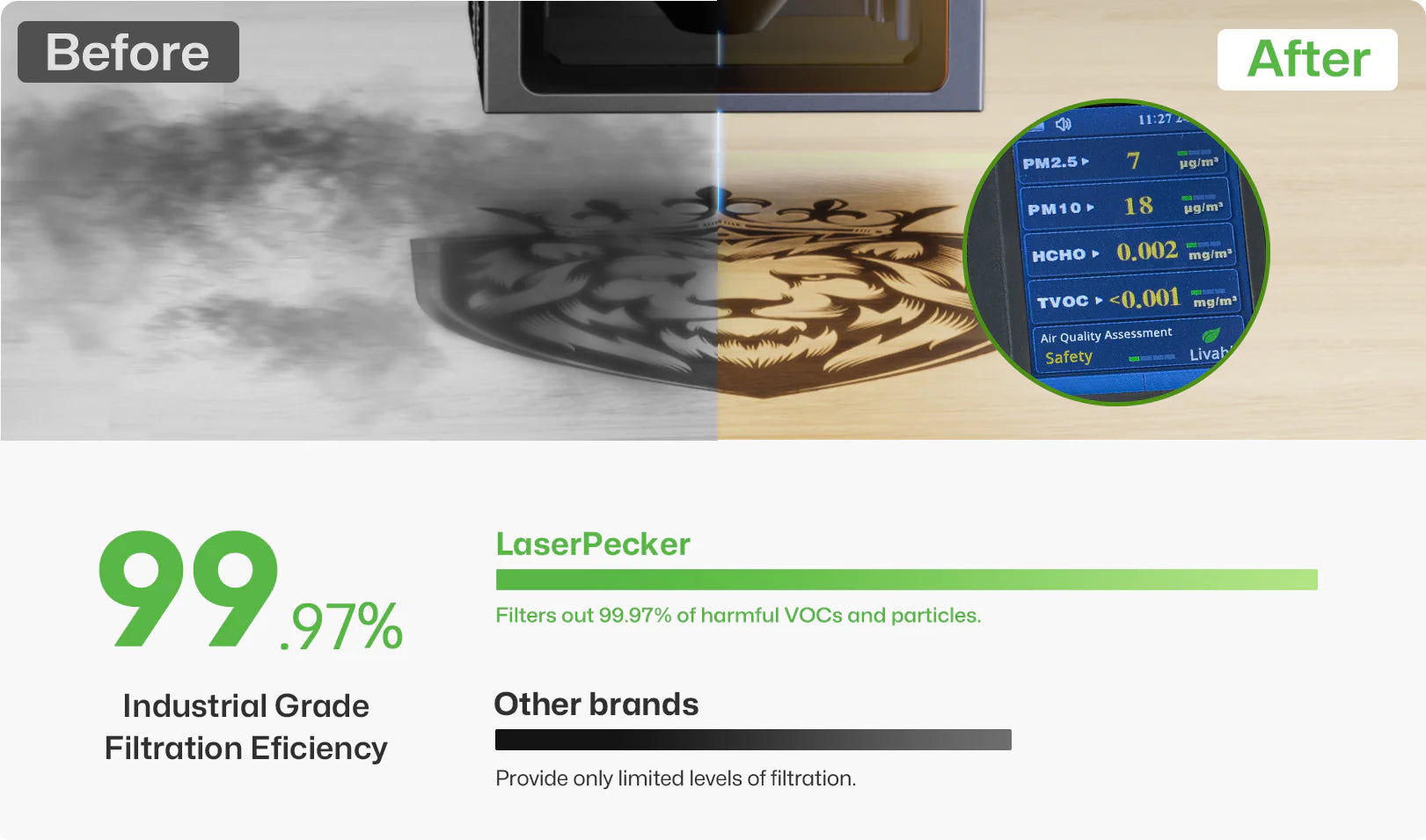 LaserPecker Desktop Air Purifier | High-efficiency Quadruple Filtration | 99.97% Purification Rate