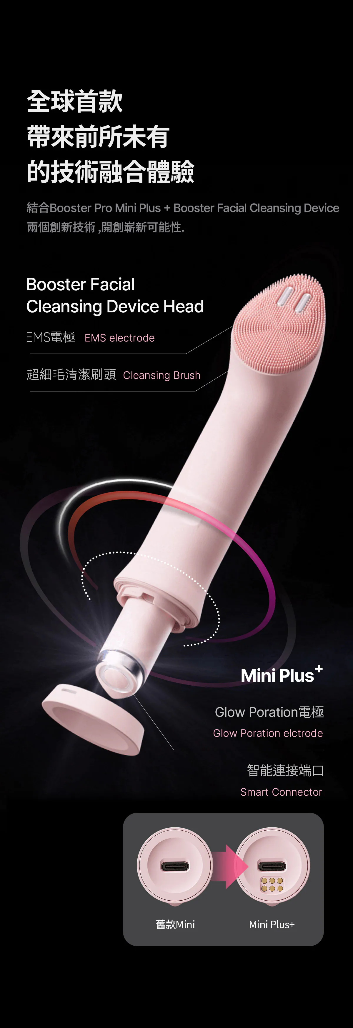 Everything starts with cleansing. Meet the Booster Facial Cleansing Device (Mini Plus + Cleansing Head), the all-in-one solution that doesn’t just clean—it defines. Experience the ultimate synergy of deep cleansing and skin definition care in a single device. Whether it’s clogged pores or dull-looking skin, the Booster Facial Cleansing Device (Mini Plus + Cleansing Head) adapts to you. With its Smart Connector Port and ergonomic design, luxurious spa-like care is now available in the palm of your hand. *This set includes 1) MEDICUBE AGE-R BOOSTER PRO MINI PLUS+ 2) MEDICUBE AGE-R BOOSTER FACIAL CLEANSING DEVICE HEAD