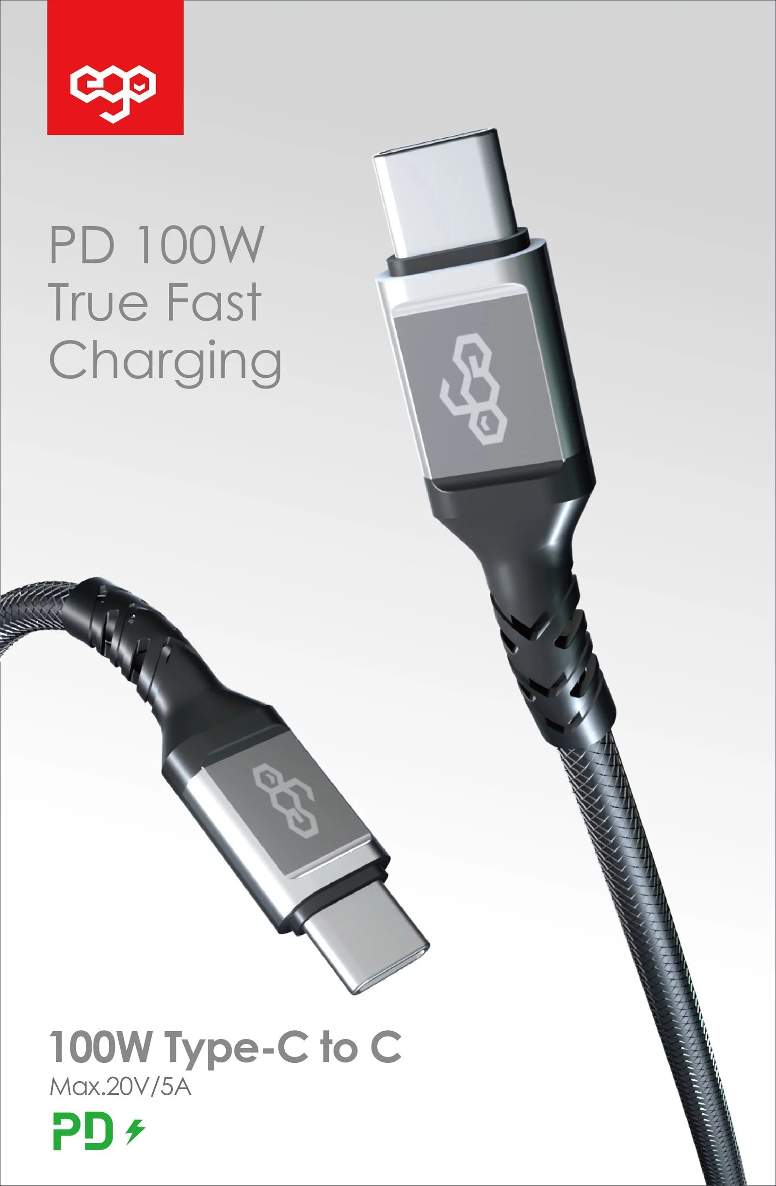 EGO 100W PD Type-C to C cable - 20AWG (20 pure copper wires)