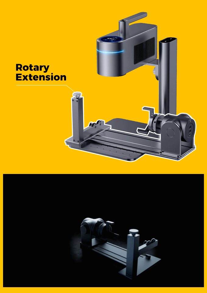 Now you can customize an irregular cylinder! LaserPecker4's Rotary Extension features three adjustable jaw attachments, which support engraving objects with a diameter of 3mm-200mm. Whether it is conical, sphere, cylindrical, or annular inner or outer walls, LaserPecker4 can easily rotate and engrave them.
