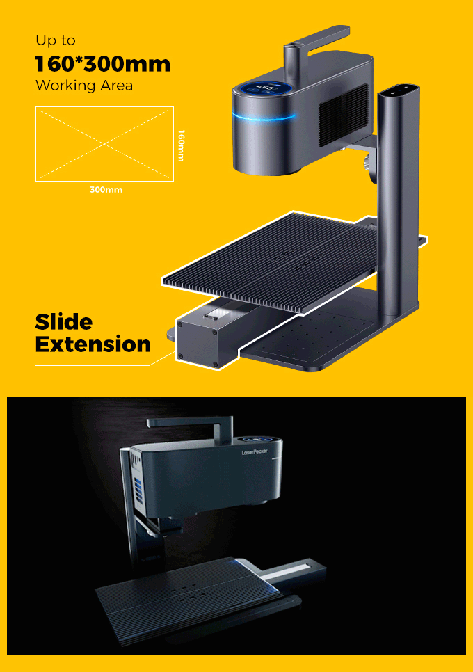 The working area of LaserPecker4 is extended to an impressive 160*300mm, large enough to handle all your ambitious ideas.