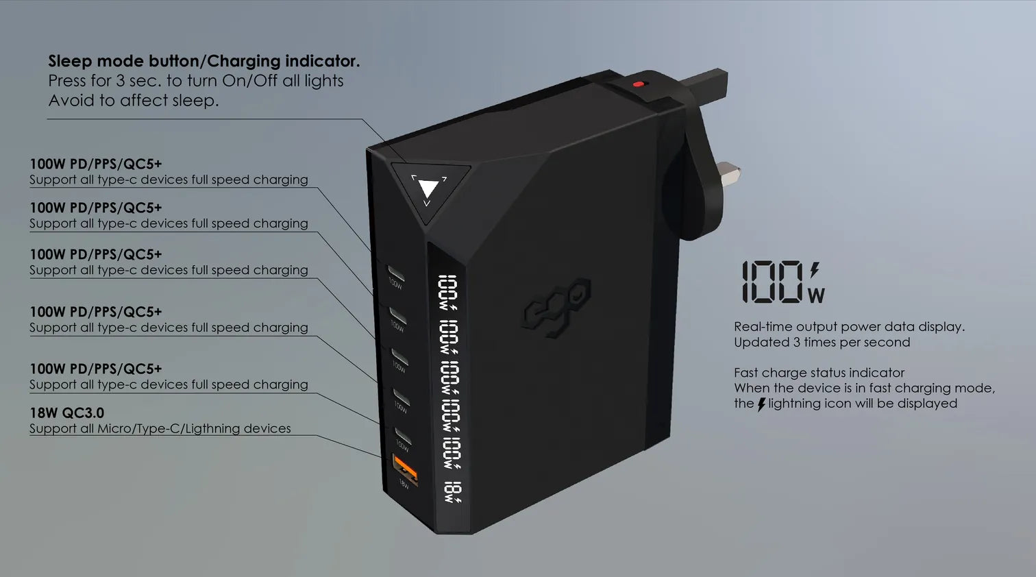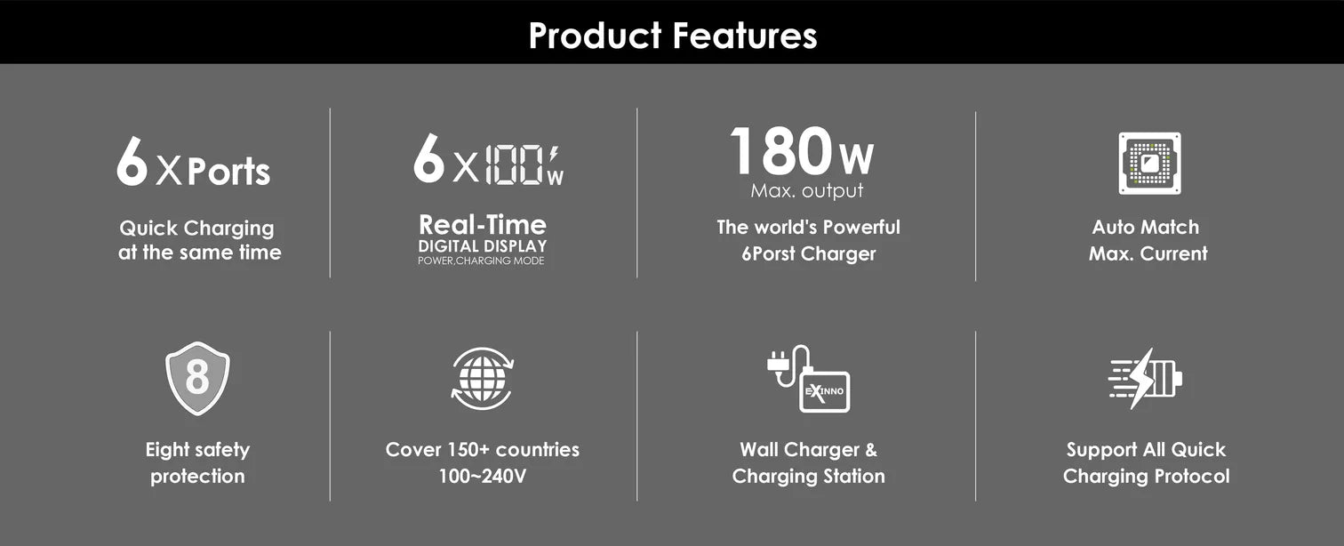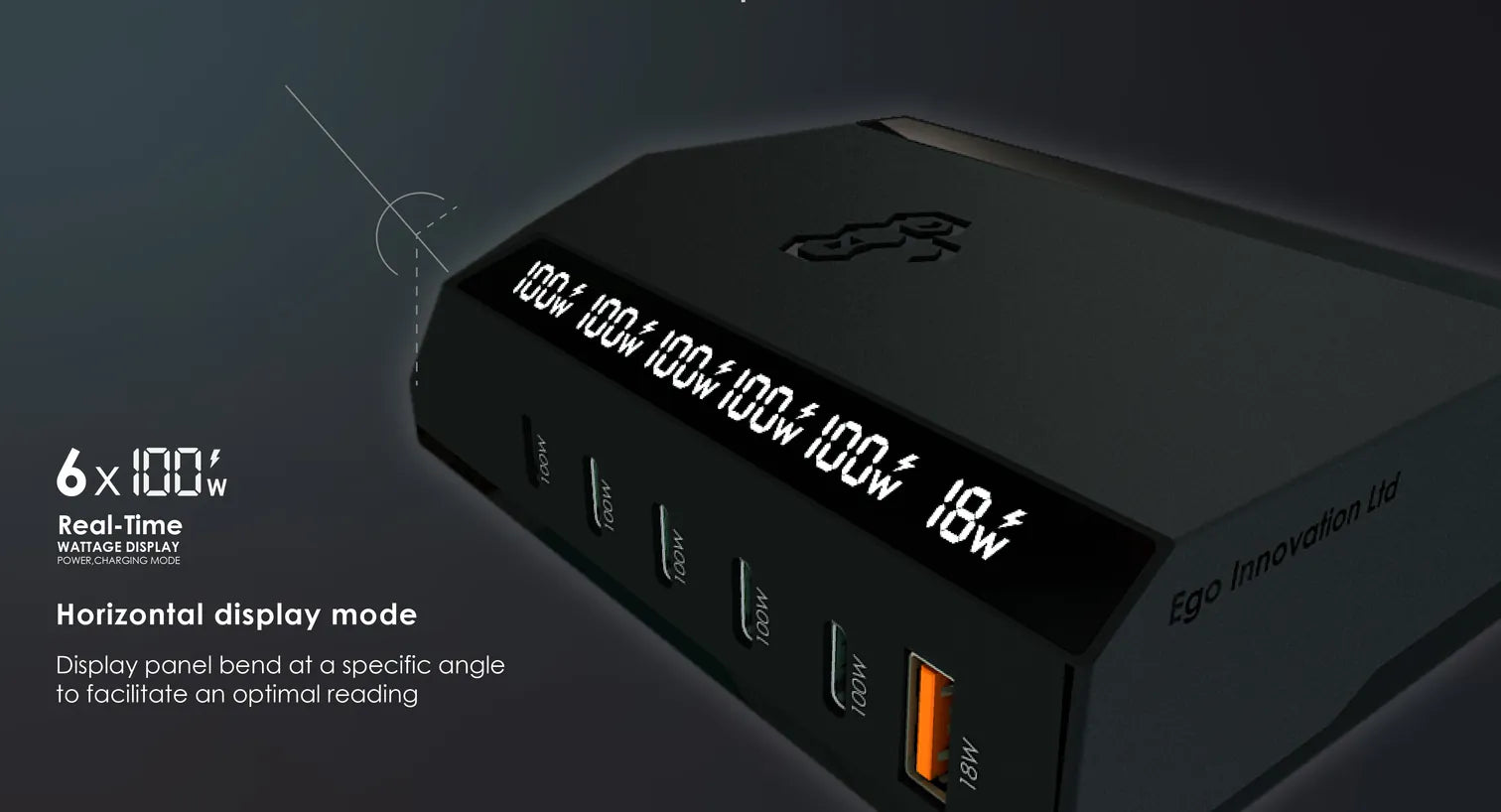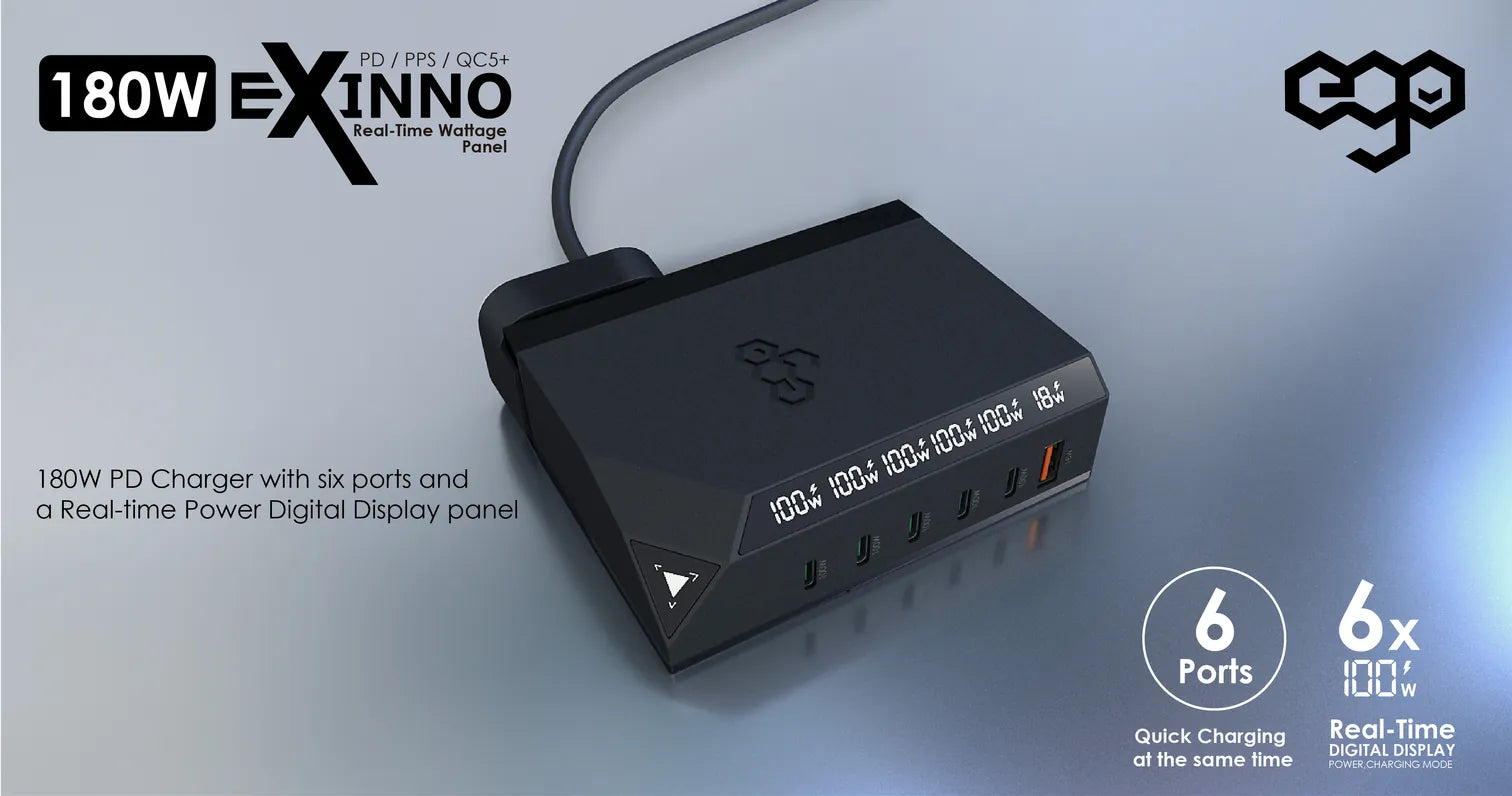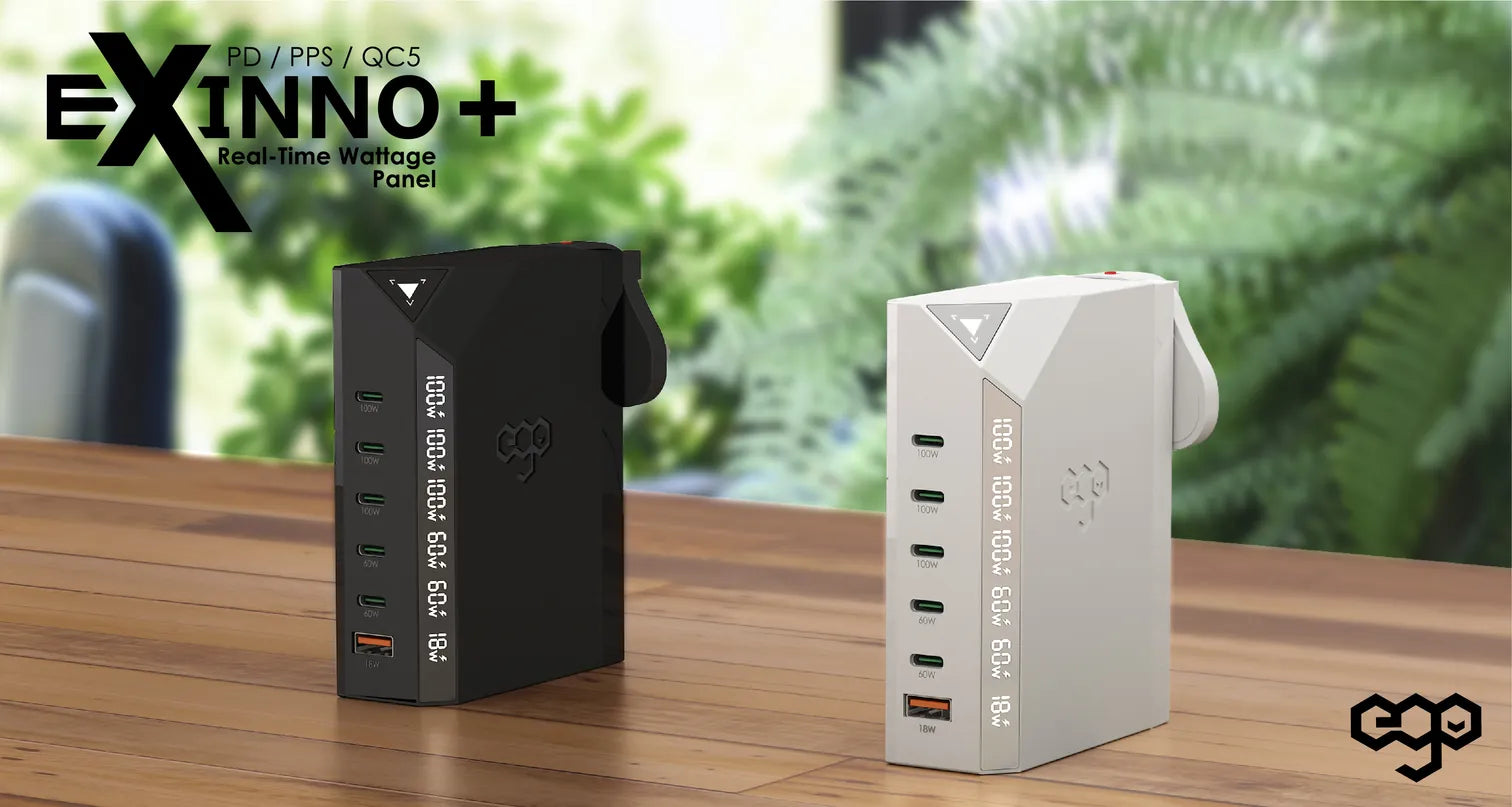 EGO EXINNO+ 180W 即時輸出顯示 6洞USB充電器 - 白色 [香港行貨]