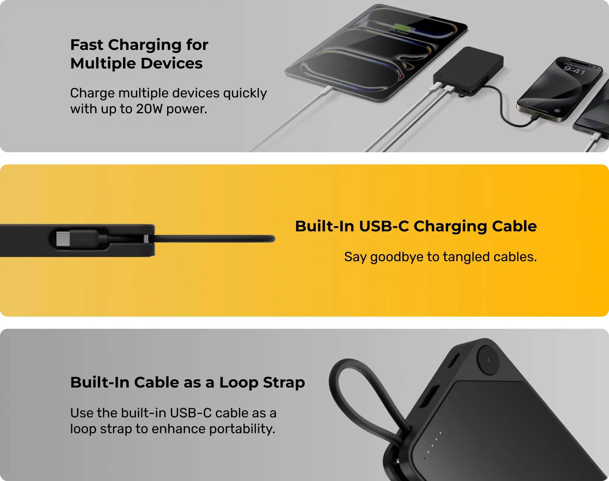 MOMAX 1-Power X 10000mAh 內置USB-C線移動電源 [香港行貨]