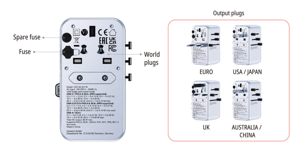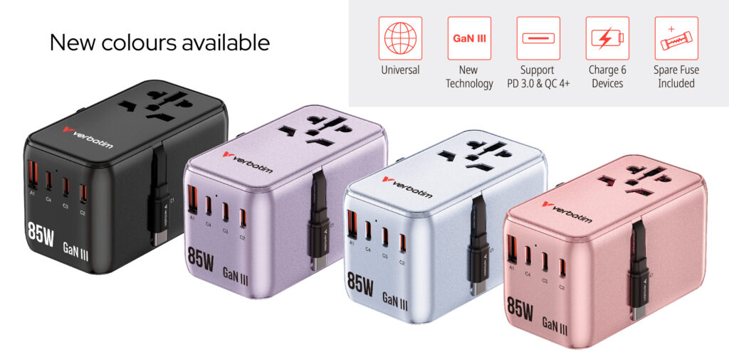 VERBATIM Charge 'n' Travel 85W 通用旅行轉插連伸縮充電線 (CNT-02) - 30176 [香港行貨]