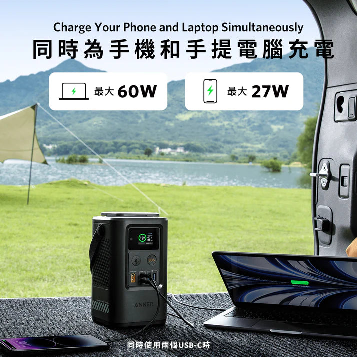 • 可透過 60W 及 27W USB-C輸出同時為你的手機及手機電腦進行充電