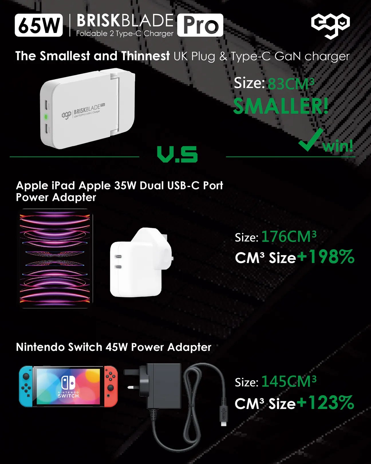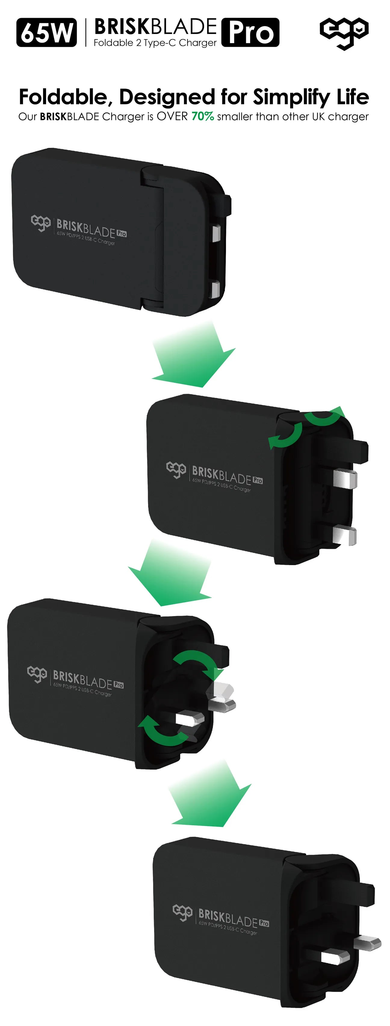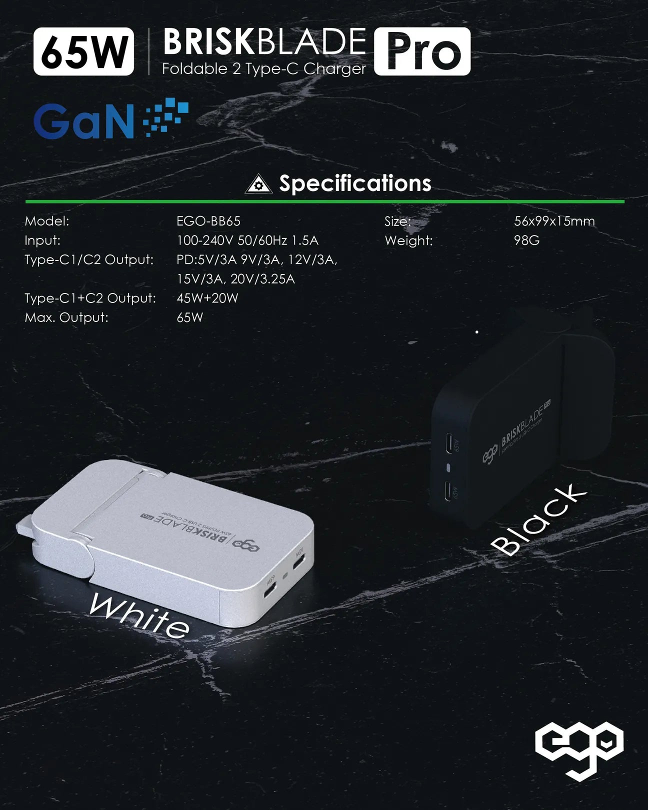 EGO 65W 刀鋒 Brisk Blade Pro氮化鎵摺疊充電器 [香港行貨]