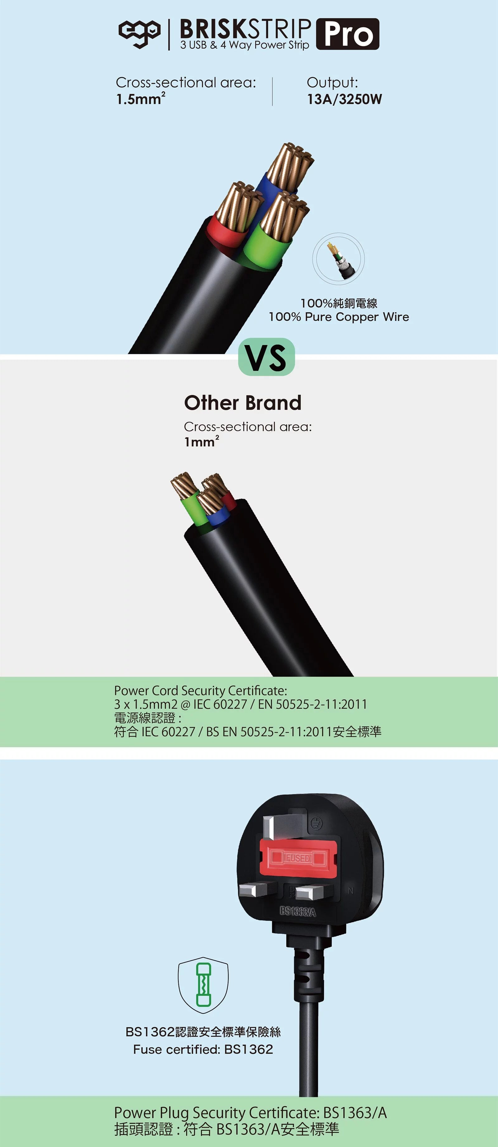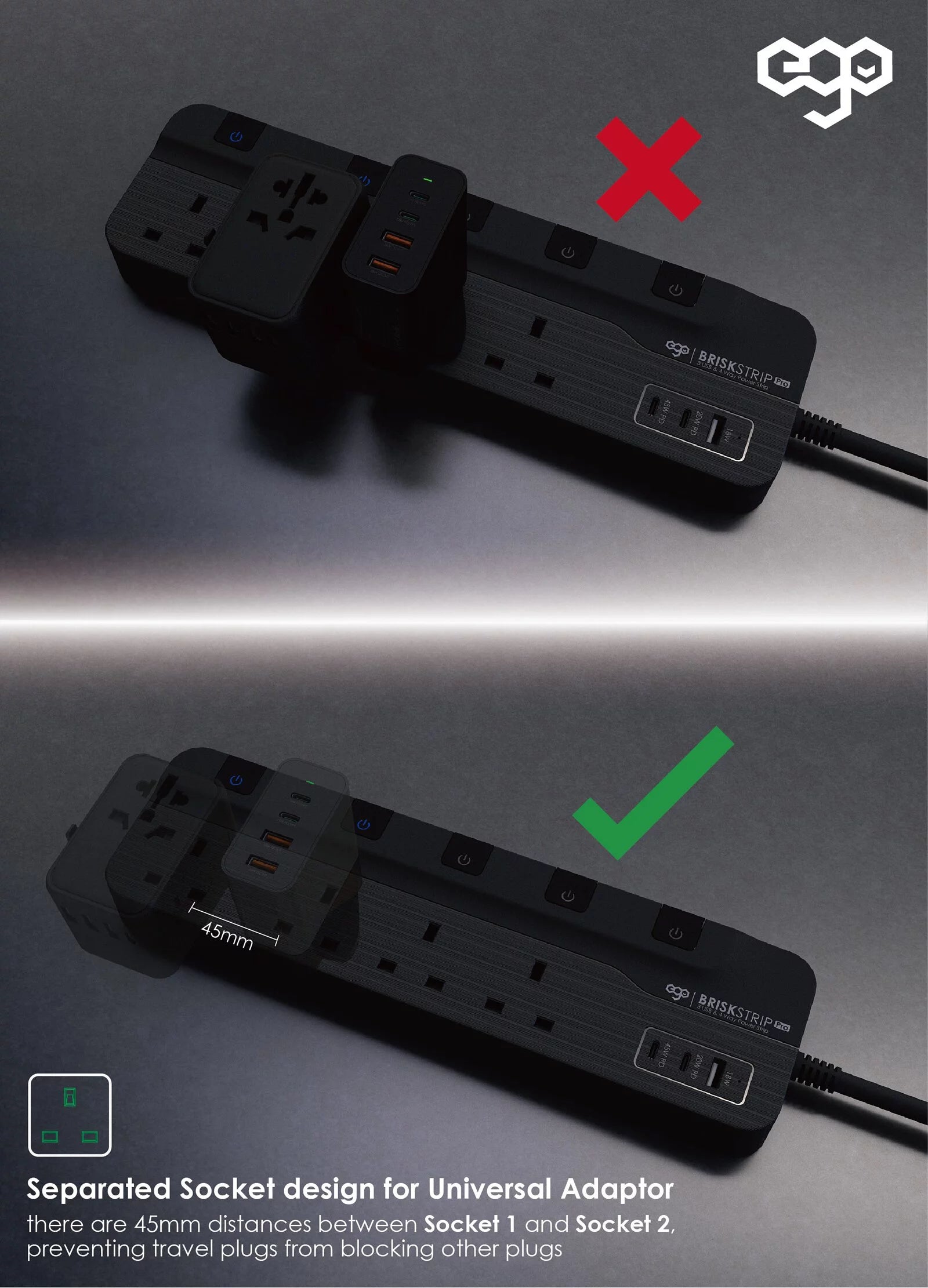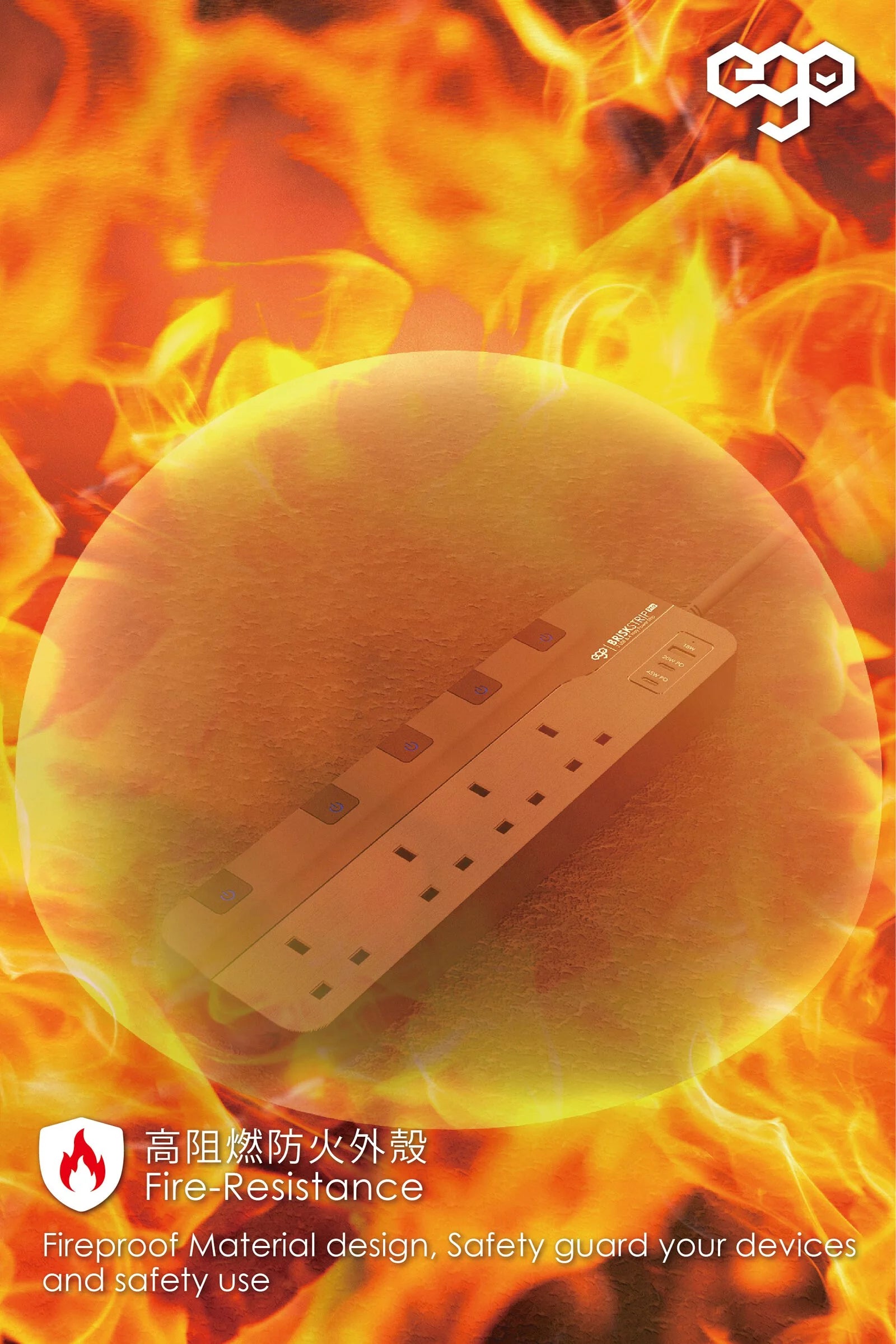 EGO BRISK STRIP PRO GAN PD45w 3USB & 4位 防雷Type C拖板 [香港行貨]