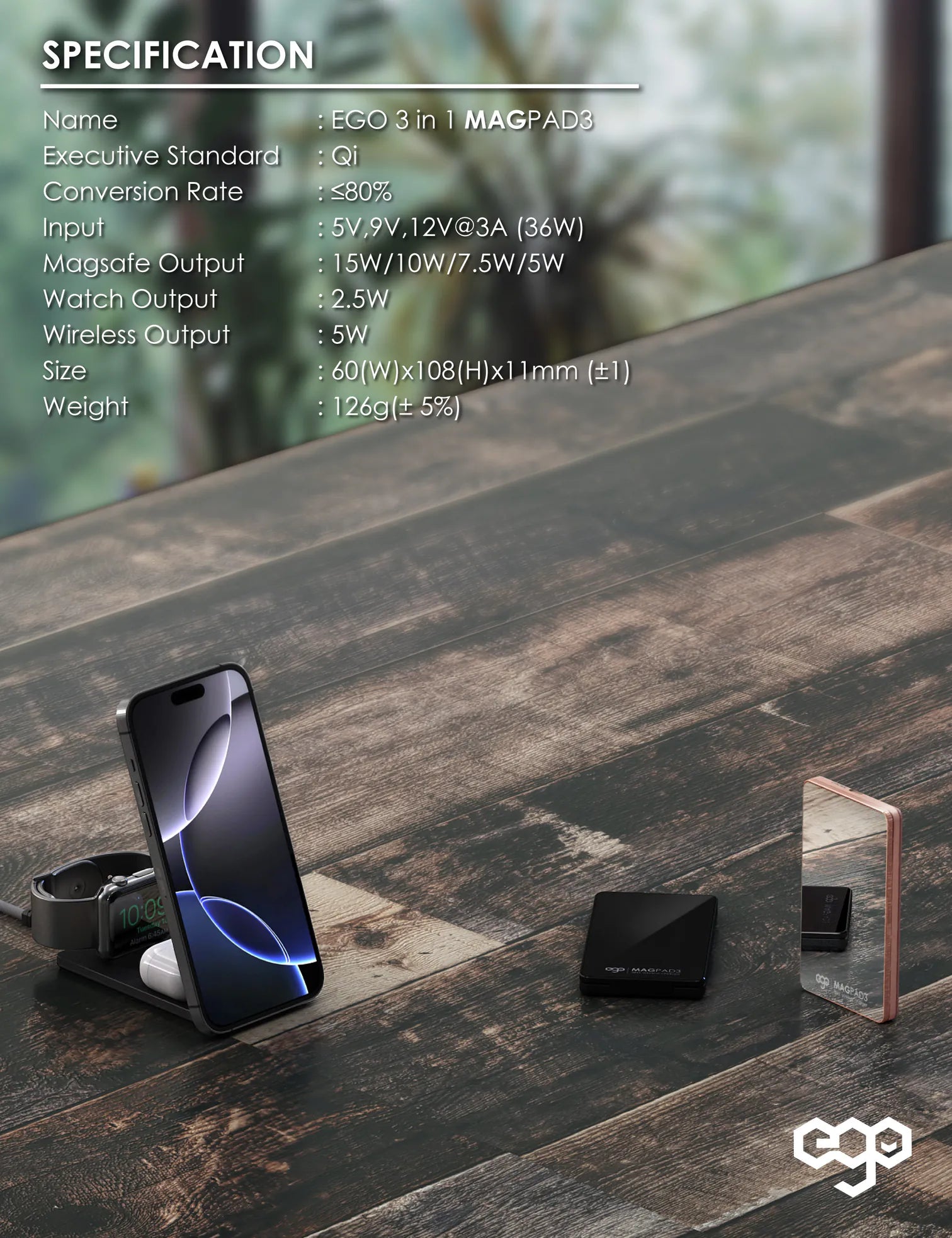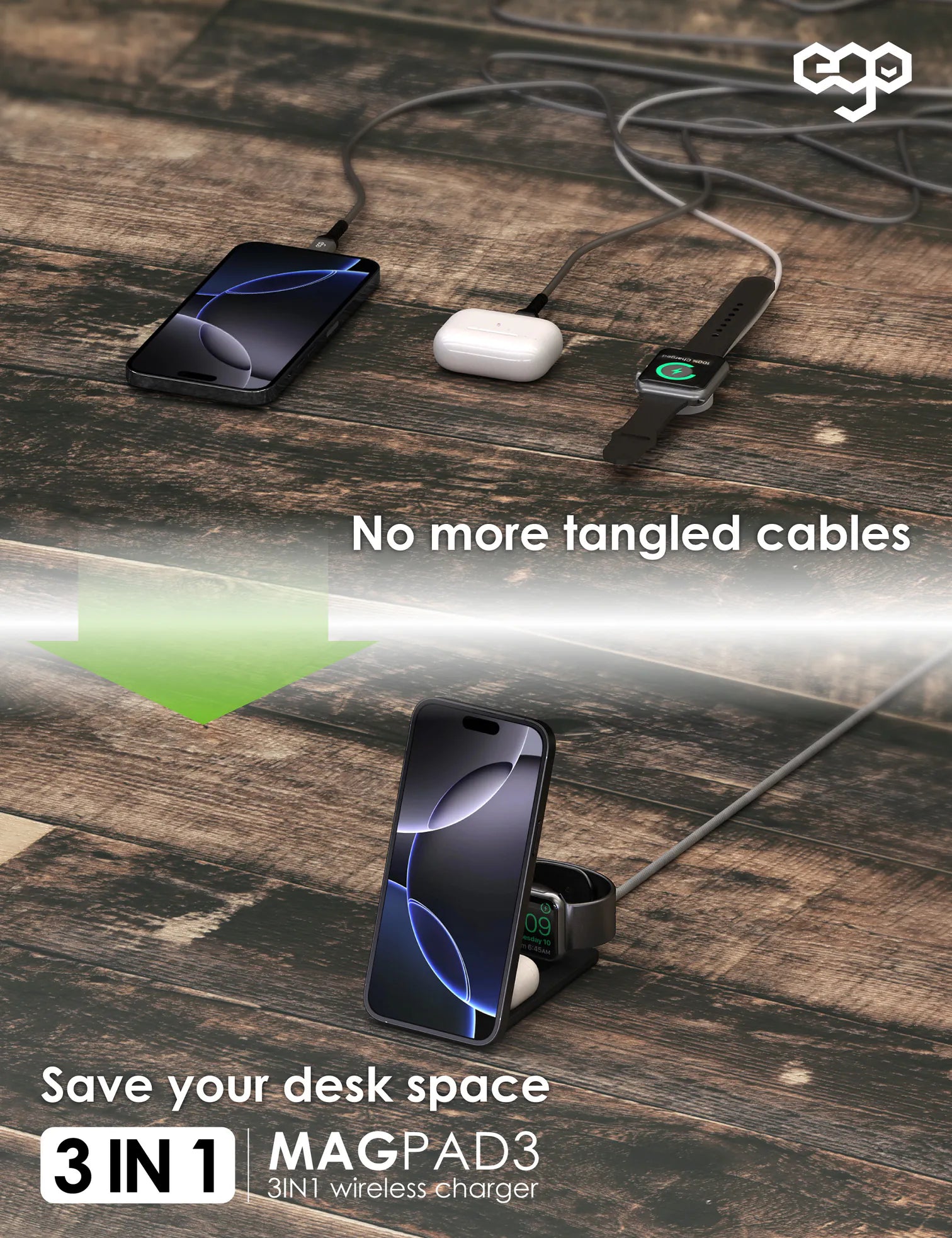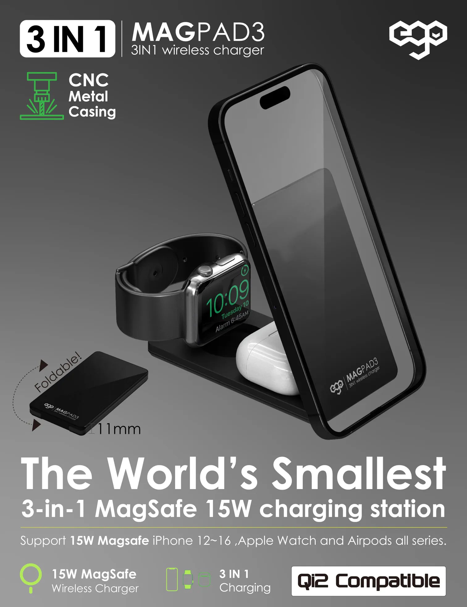 EGO MagPad3 3in1 Magsafe 充電座 [香港行貨]