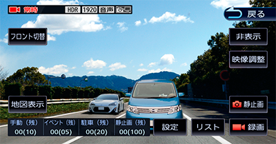 前後相機可進行連續錄影、事件錄影、手動錄影和靜態影像錄影。前後攝影機同時錄影,即使在緊急情況下也能安心無虞。
