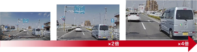 您可以更改錄製影片的放大倍率,並在 Saisoku Navi 的大螢幕上播放。