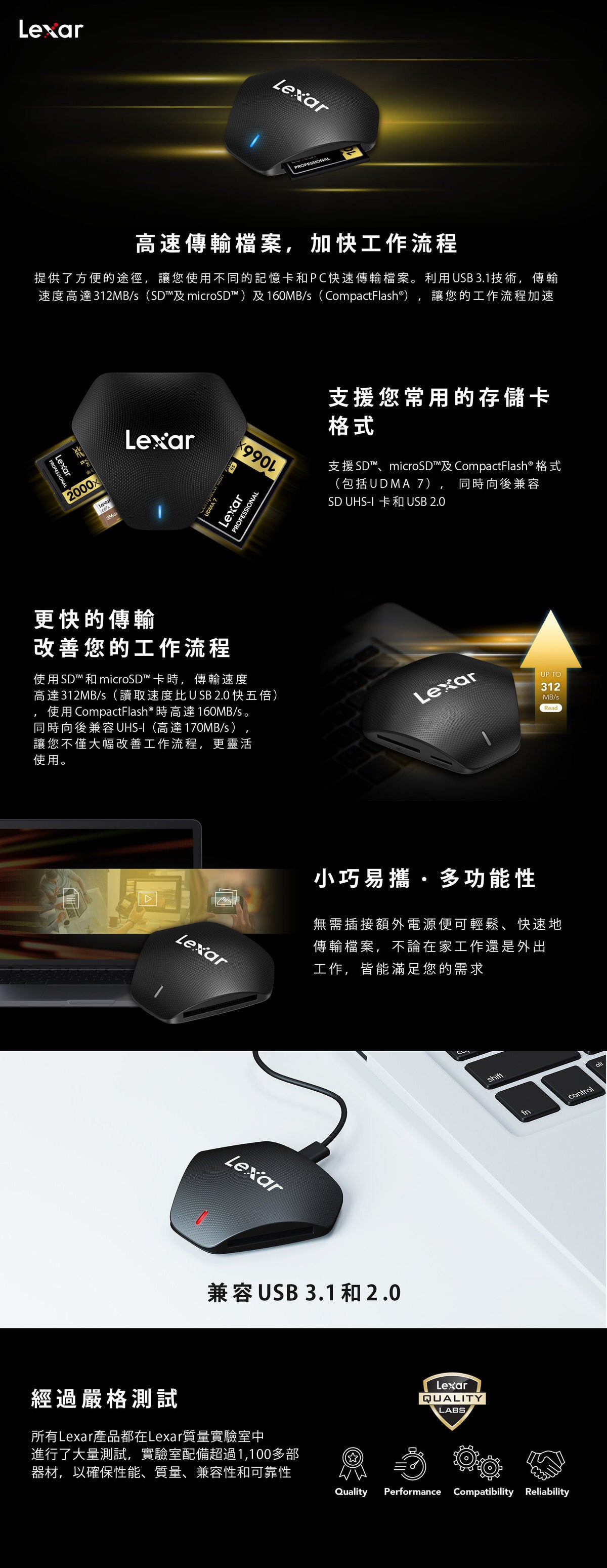 LEXAR Professional 多功能三合一USB 3.1讀卡機 - LRW500URB [香港行貨]